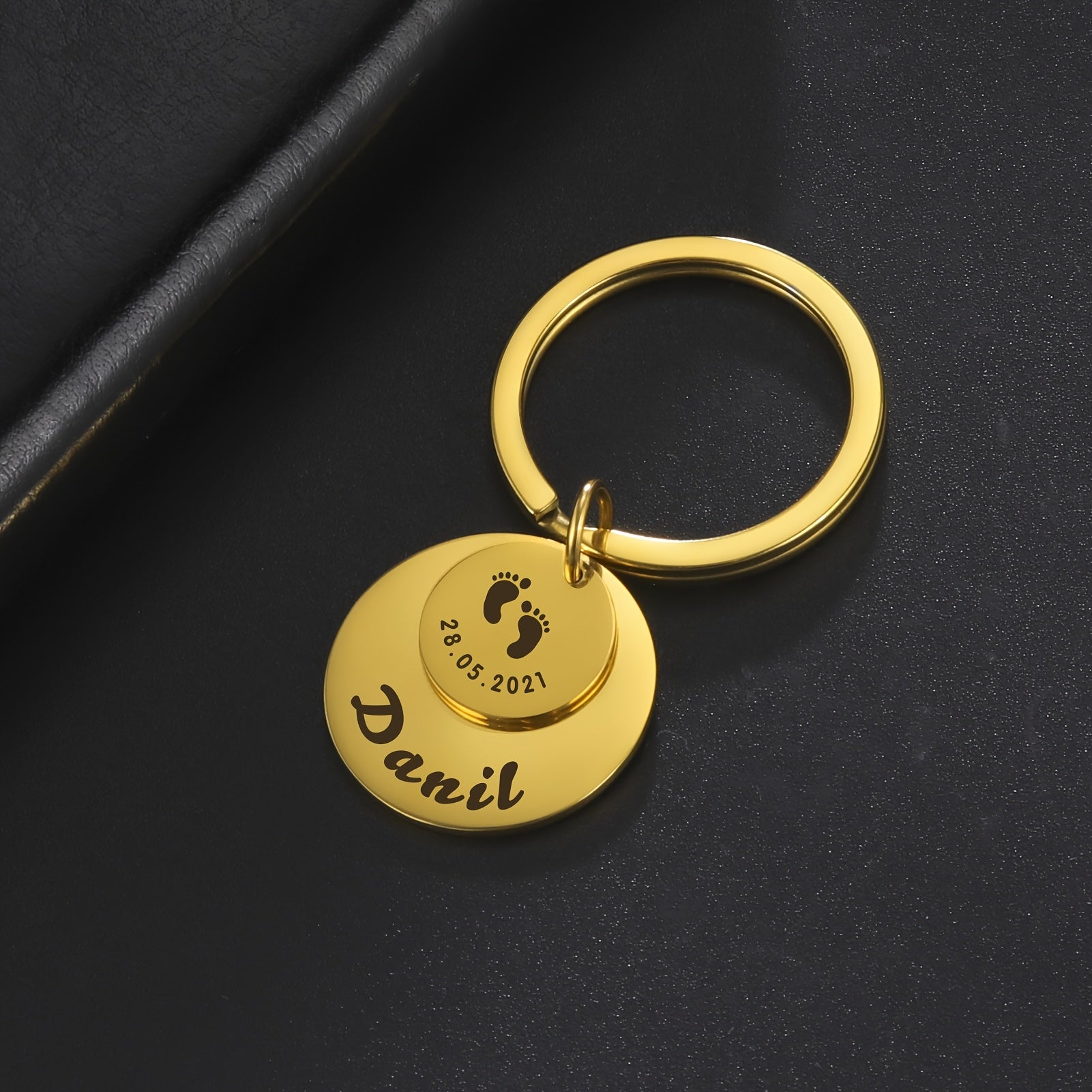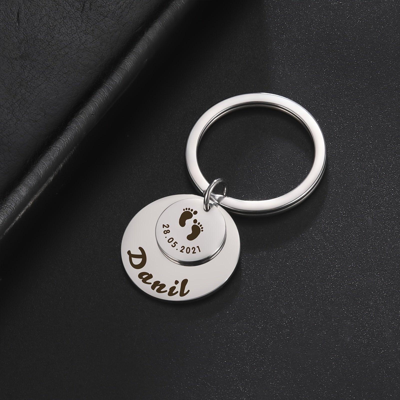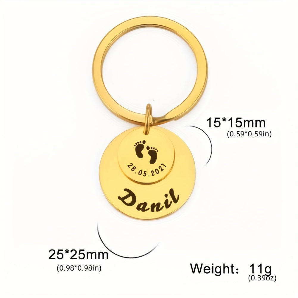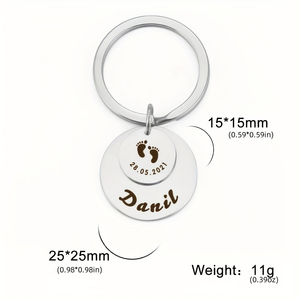 Beautifully engraved keychain featuring a cute footprint design and customized with a name. A thoughtful gift for anyone special in your life.