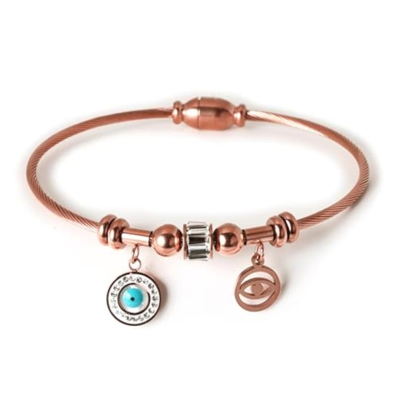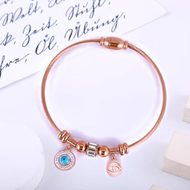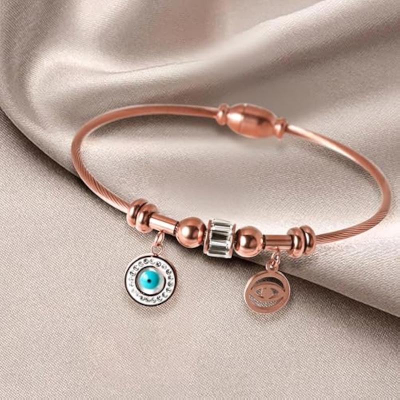 This Evil Eye Bracelet is a stylish accessory that is designed for women. It features an anti-tarnish finish and is perfect for girls to wear. The rose Kada design adds a touch of elegance to any outfit.
