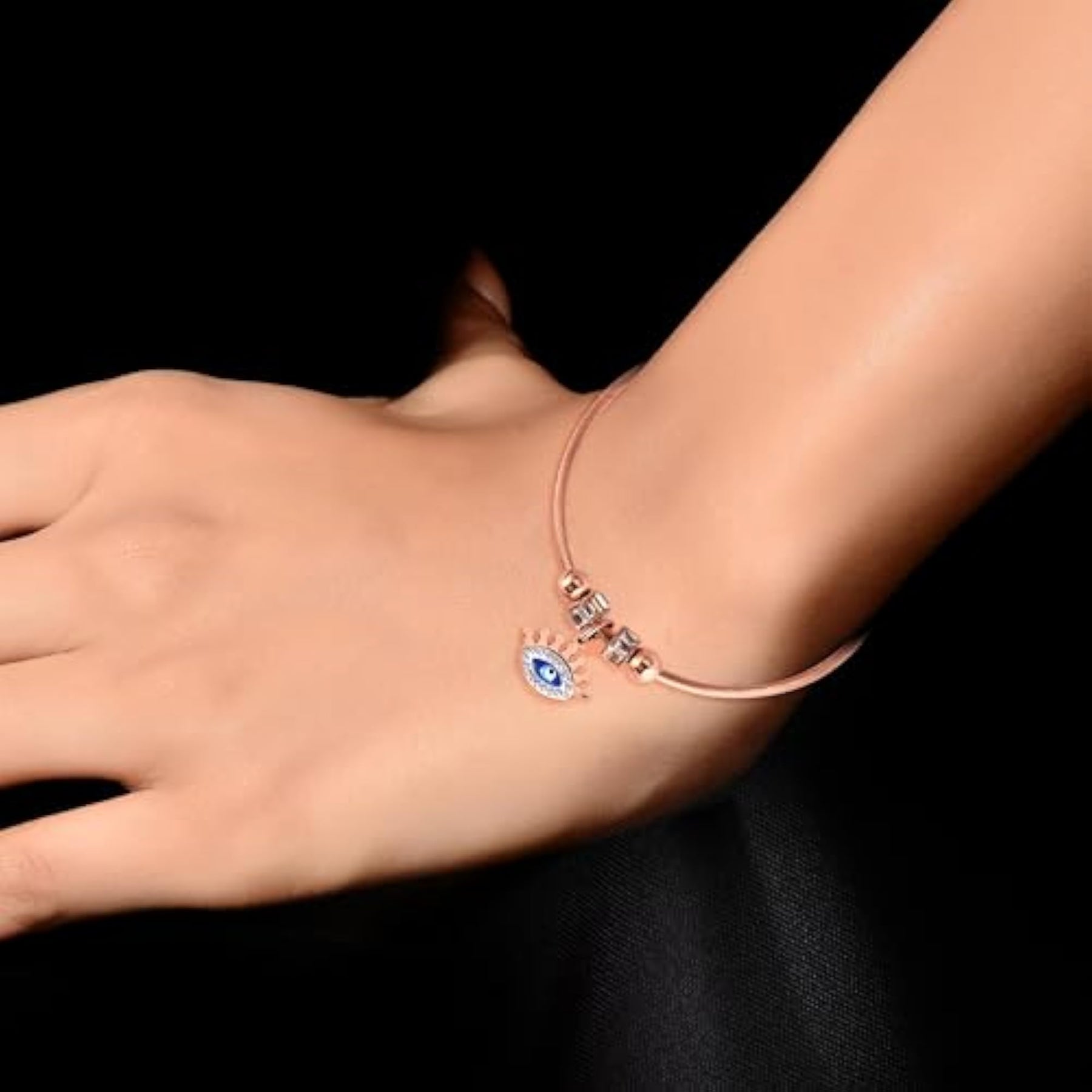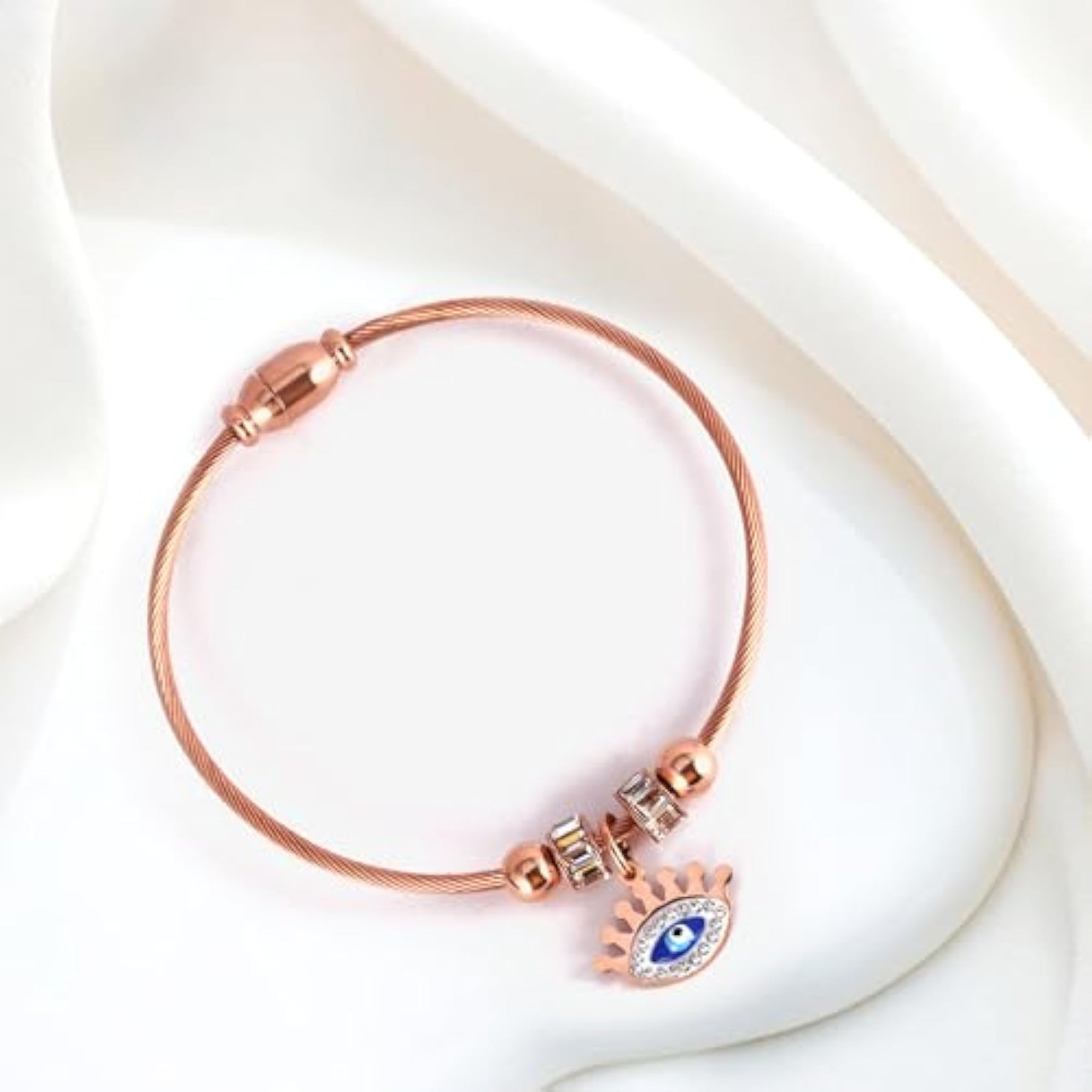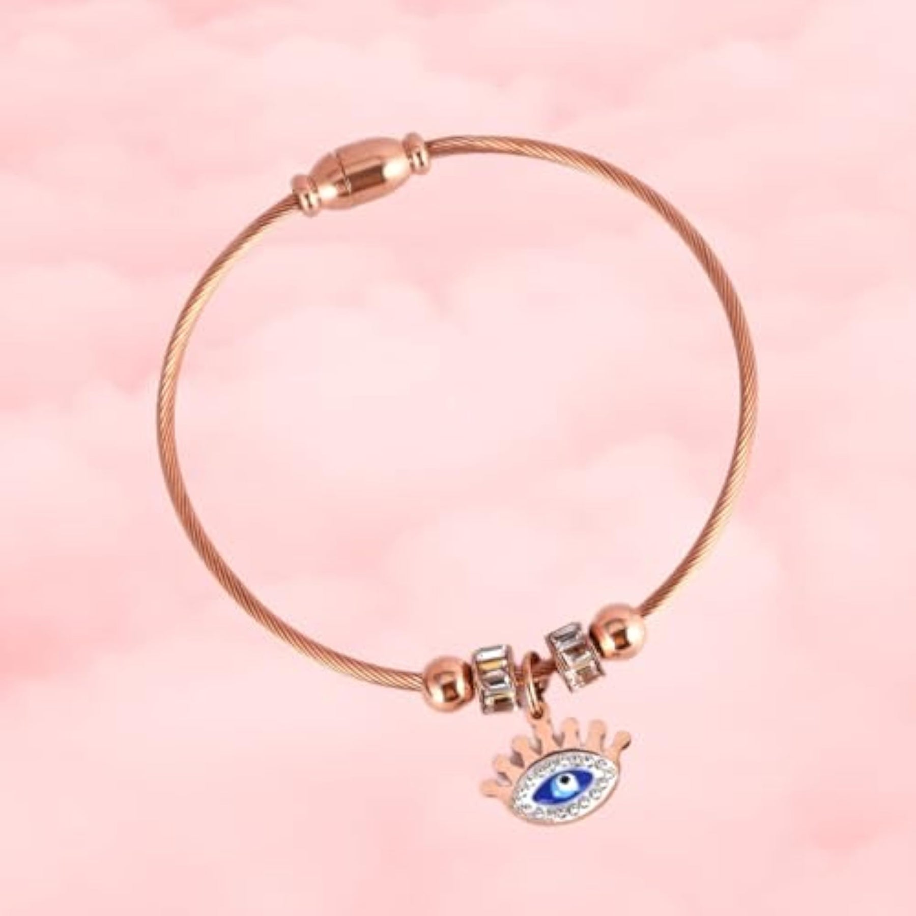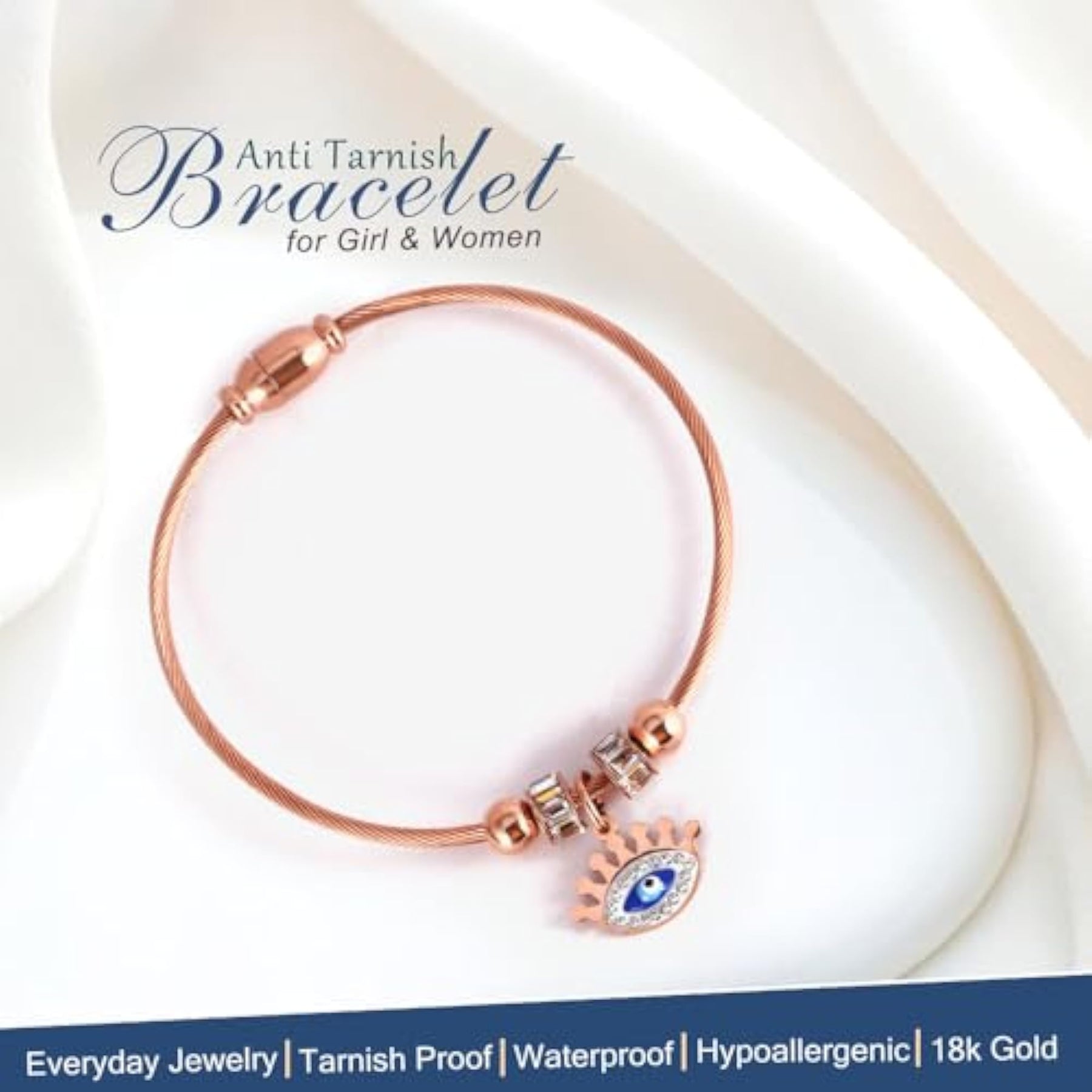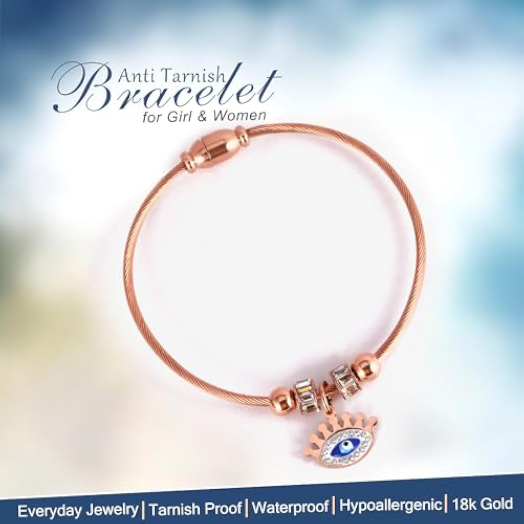 Add a touch of protection and style with this evil eye bracelet for women. The stylish design is anti-tarnish and perfect for everyday wear. A great accessory to ward off negative energy and complement your outfit.