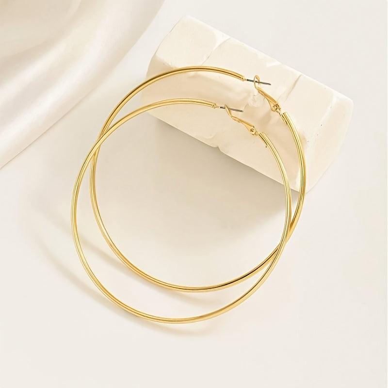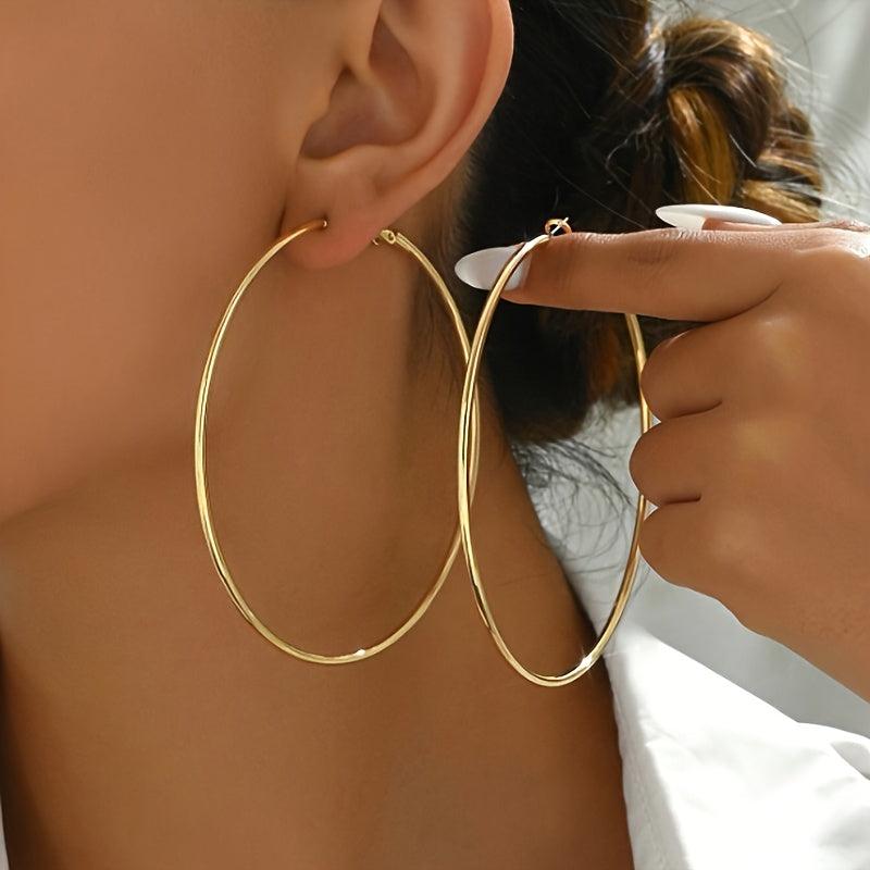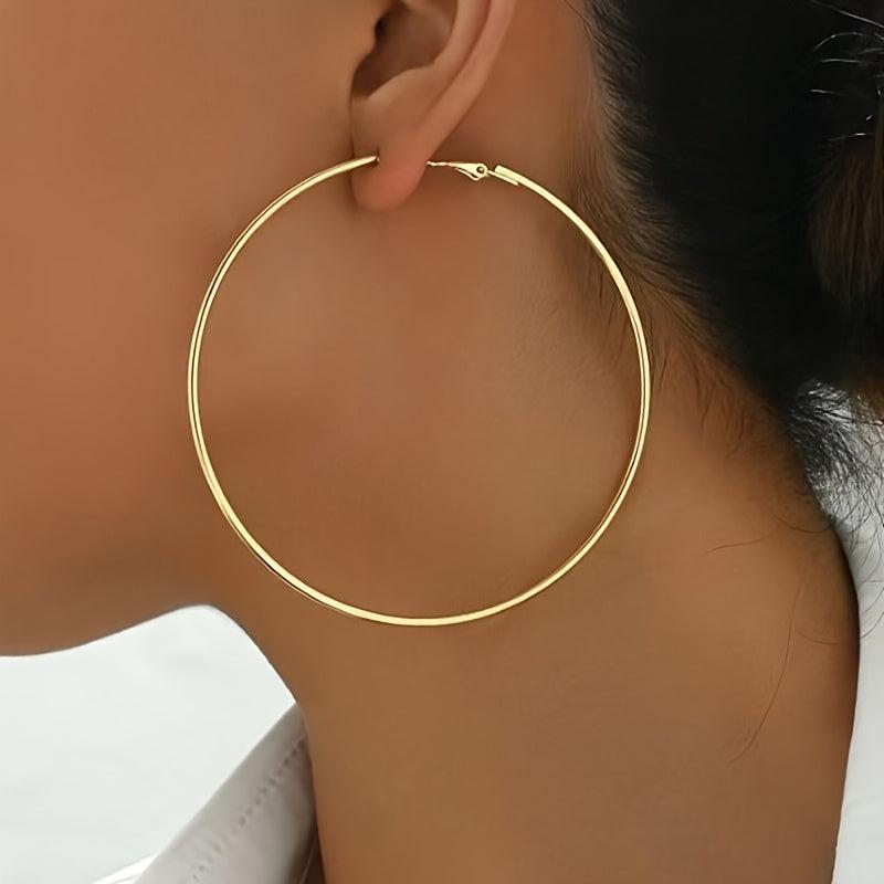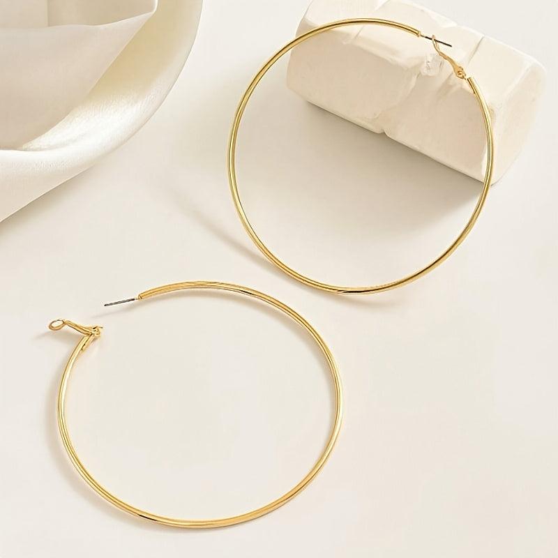 These classic circle earrings make a bold statement with their exaggerated size and glossy finish. Perfect for daily wear.