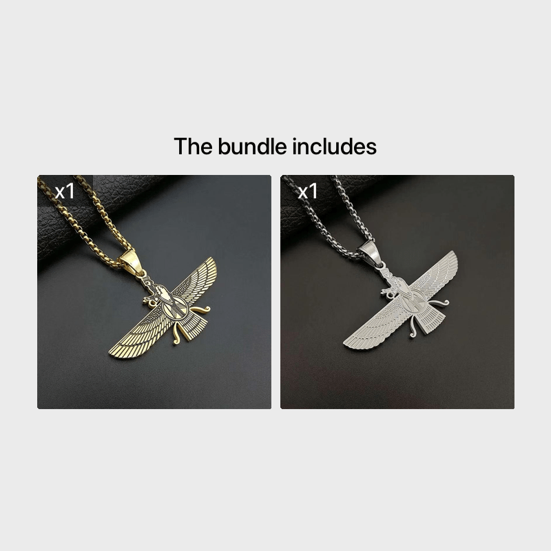 This Farvahar Persian pendant necklace is a stylish accessory for both men and women. Show off your creative personality with this unique piece of jewelry.