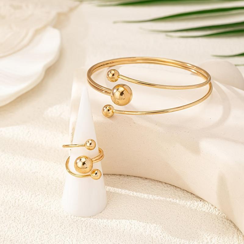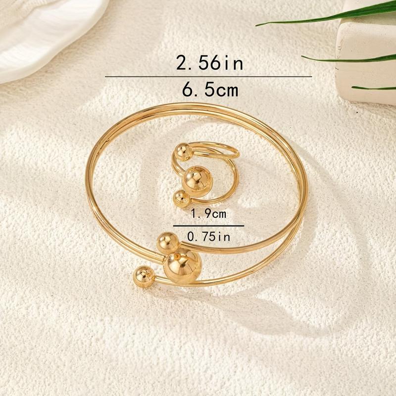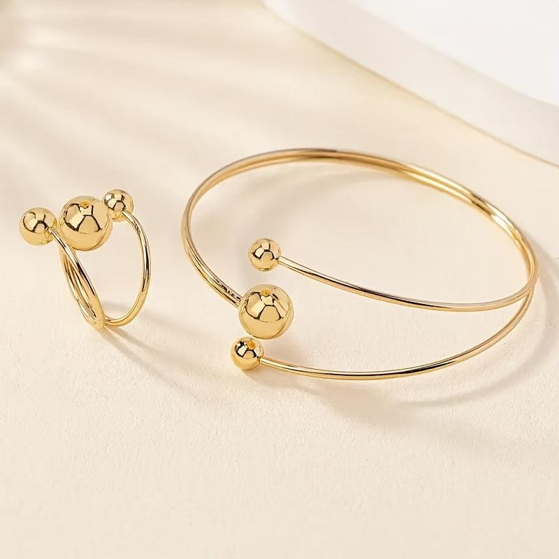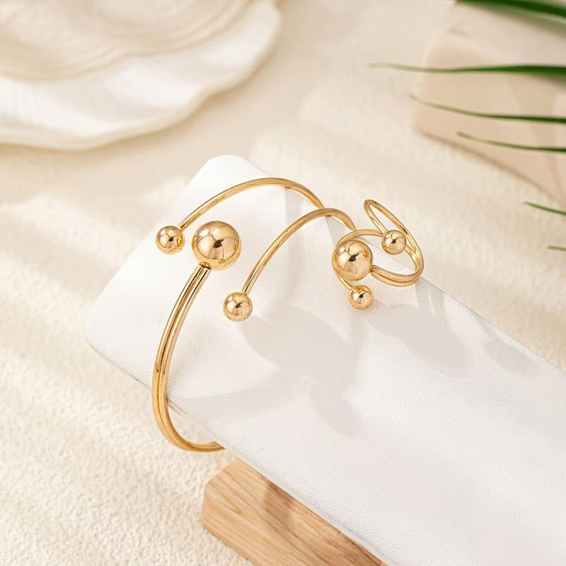 This set includes a golden and silvery small ball clip large ball layered bracelet and ring, perfect for daily matching.