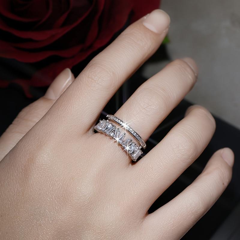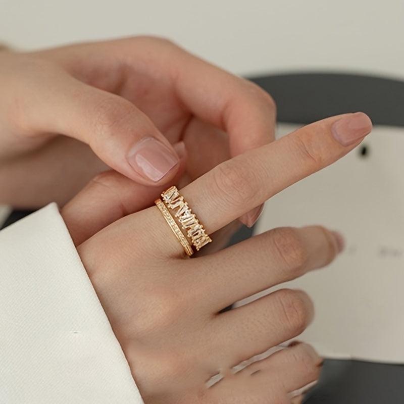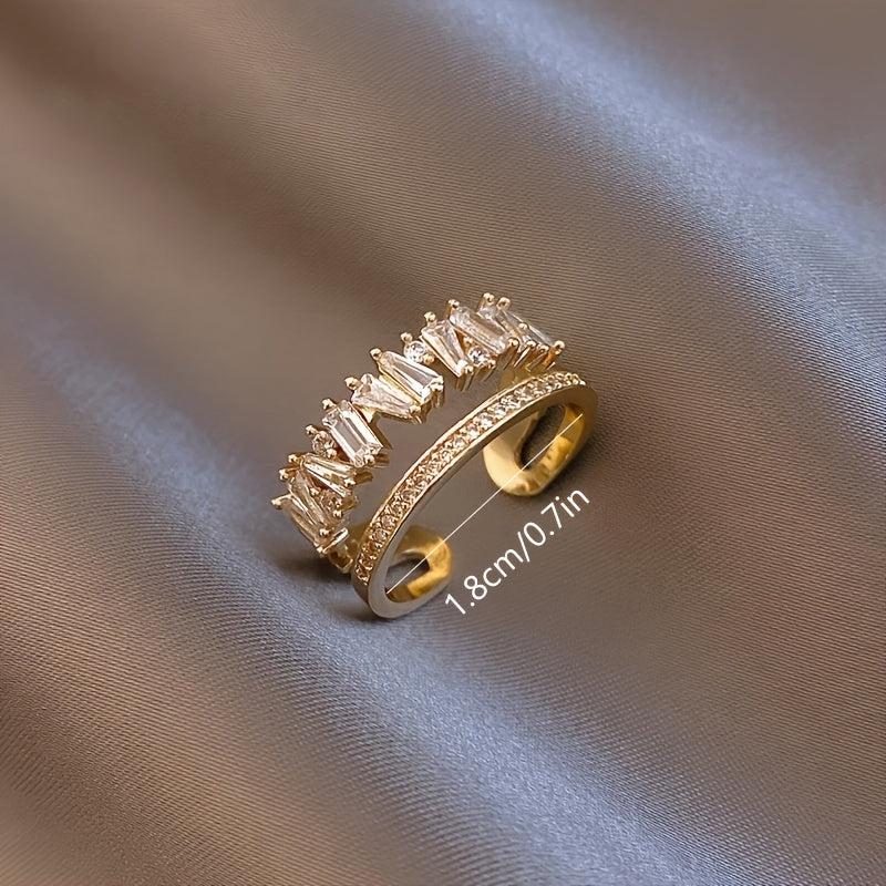Elevate your style with this trendy double layer ring featuring light micro set zirconia. Perfect for adding a touch of elegant glamour to your look.