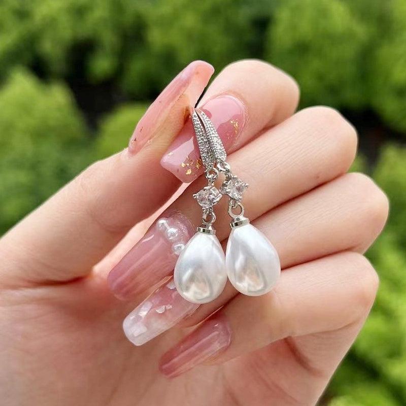 Faux Pearl Earrings 925 Silver Plated Zircon Dangle Earrings