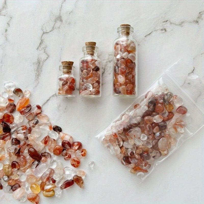 These natural stone beads in red, brown, and clear are perfect for candles, crafts, jewelry, spells, and home decor. Available in 55g and 105g options.