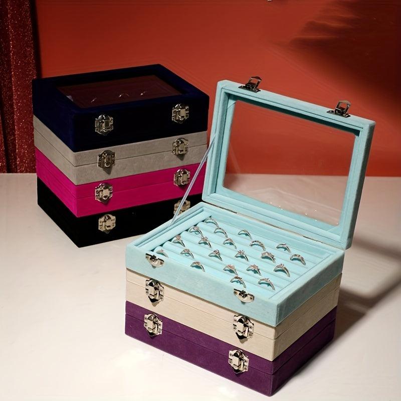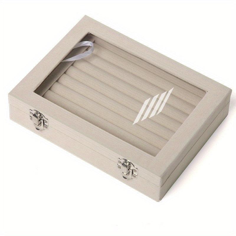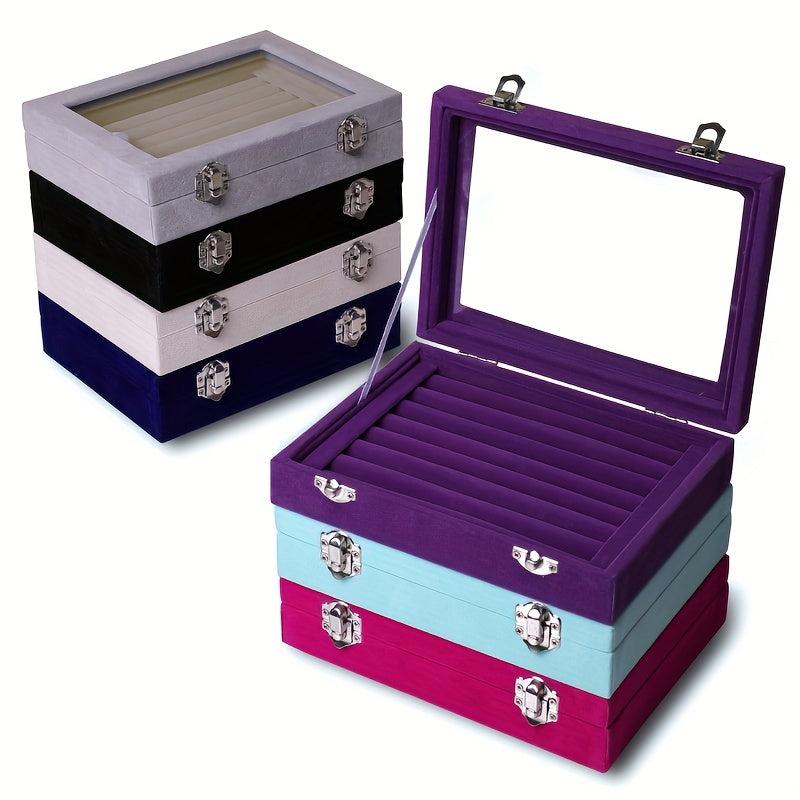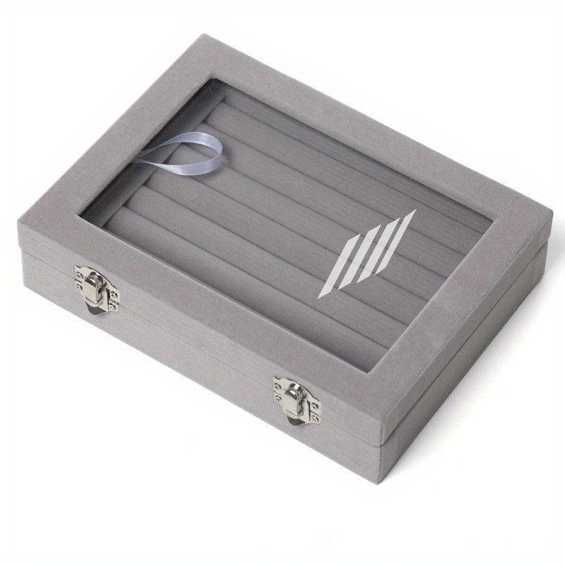 Keep your jewelry organized with this earring box. The transparent lid allows you to see your collection easily.