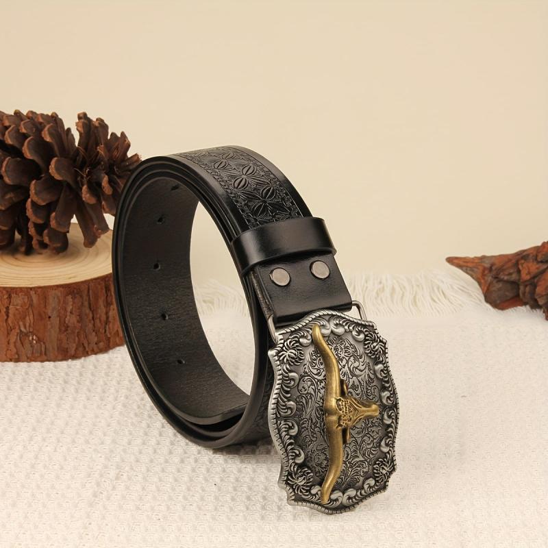 Add a touch of western flair to your outfit with this stylish bullhide faux leather belt. The Flower and Wave Cow design features a smooth buckle and eyelet round holes for a unique look.
