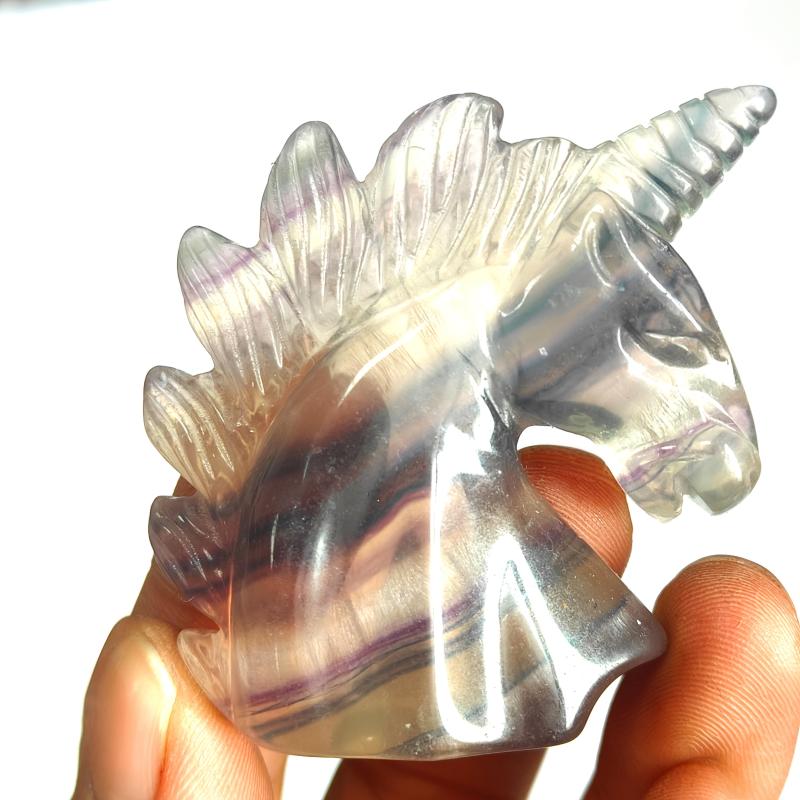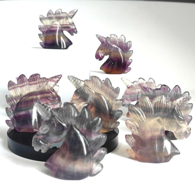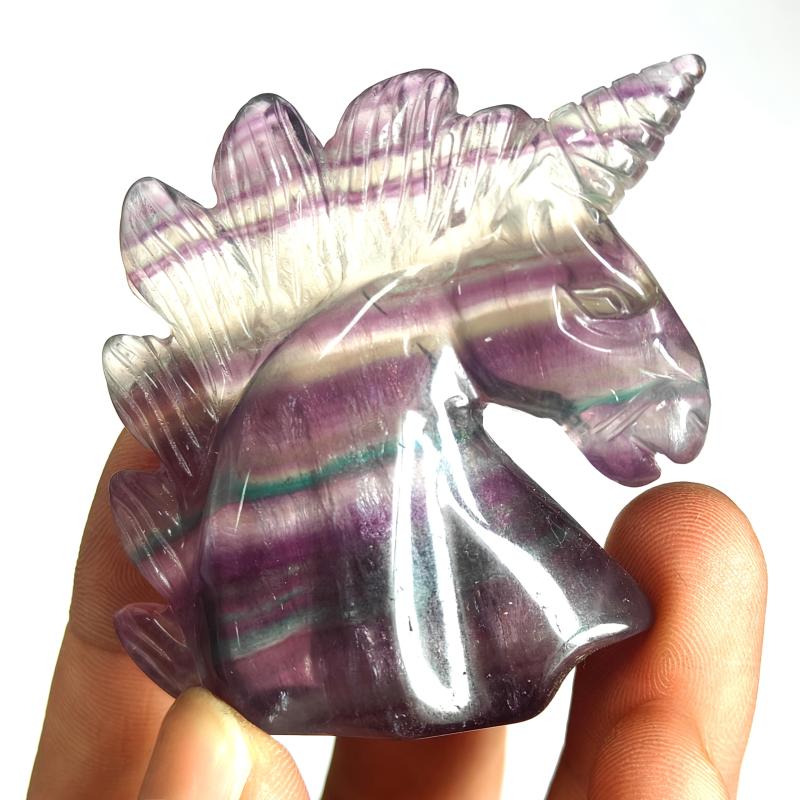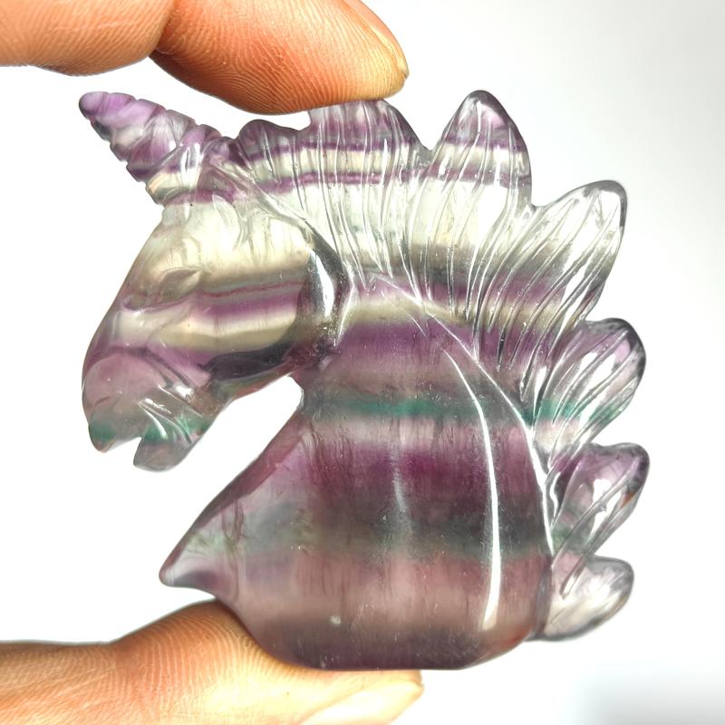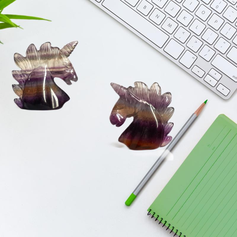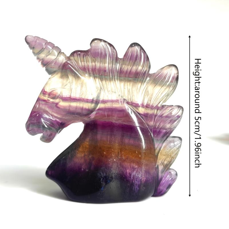 Adorn your space with this 5cm Rainbow Fluorite Unicorn Ornament. This mythical unicorn crystal is perfect for healing and adding a touch of magic to your surroundings.