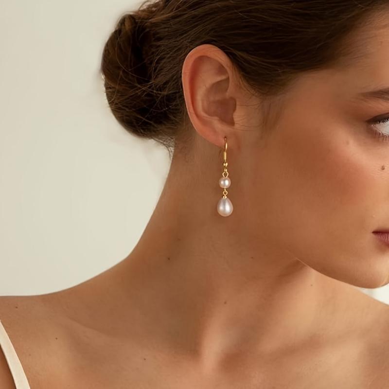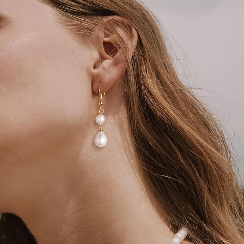 These elegant earrings feature freshwater pearls dangling from 14K gold plated 925 sterling silver ear needles.