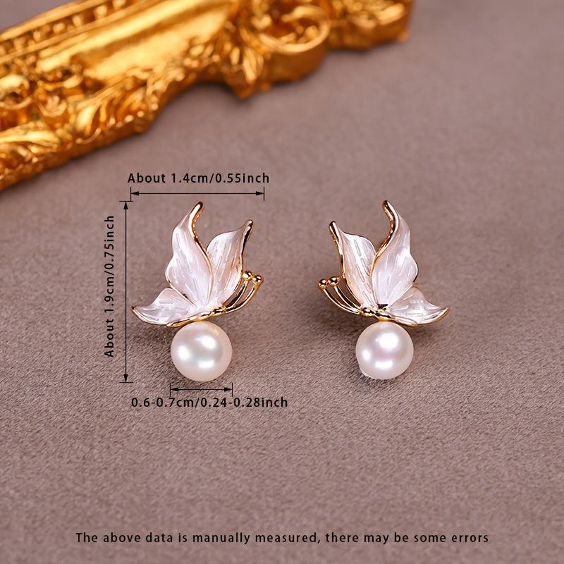 These elegant freshwater pearl stud earrings are vintage-inspired and feature a delicate butterfly design. They are the perfect gift for her and can be worn with casual attire or for special occasions.