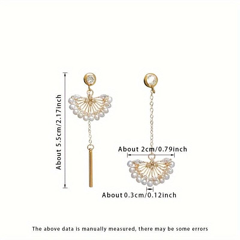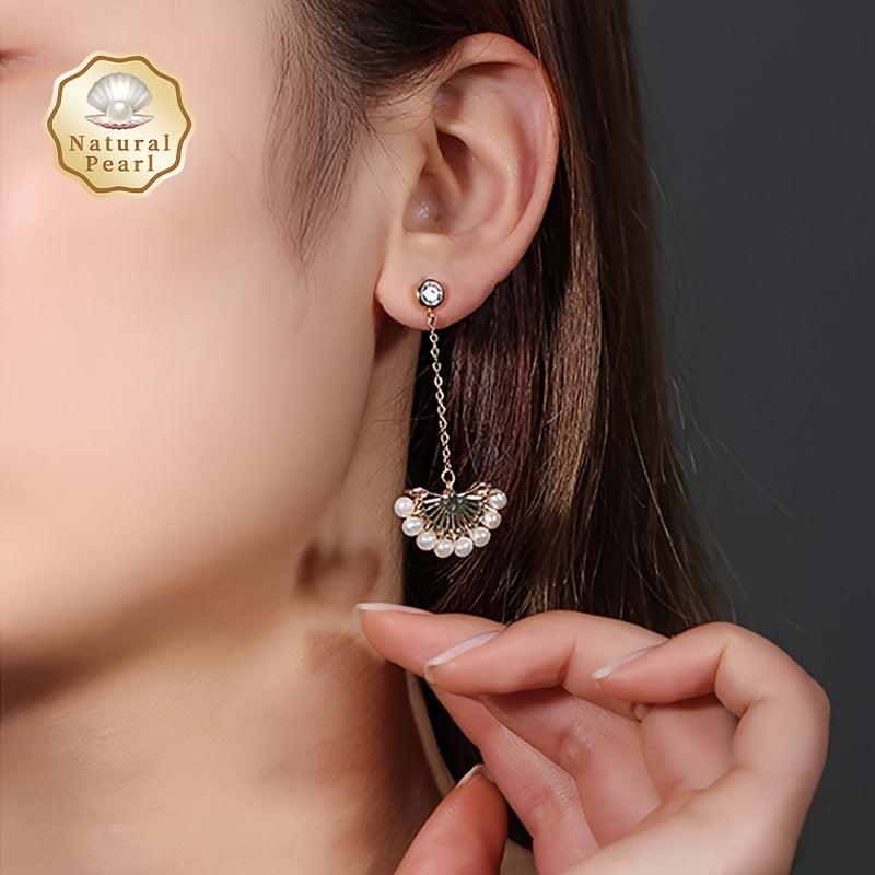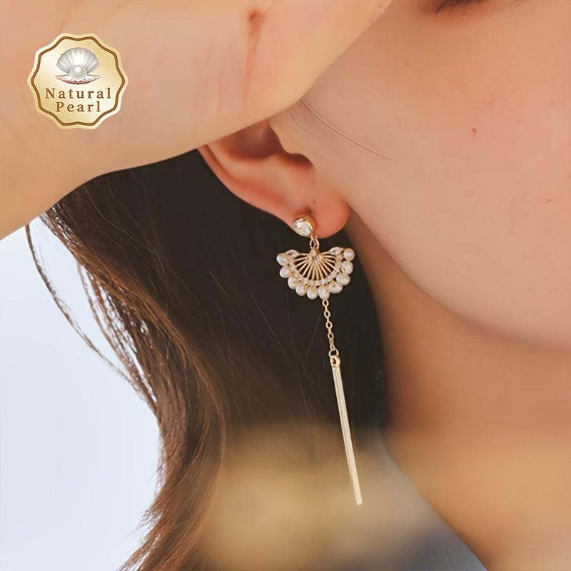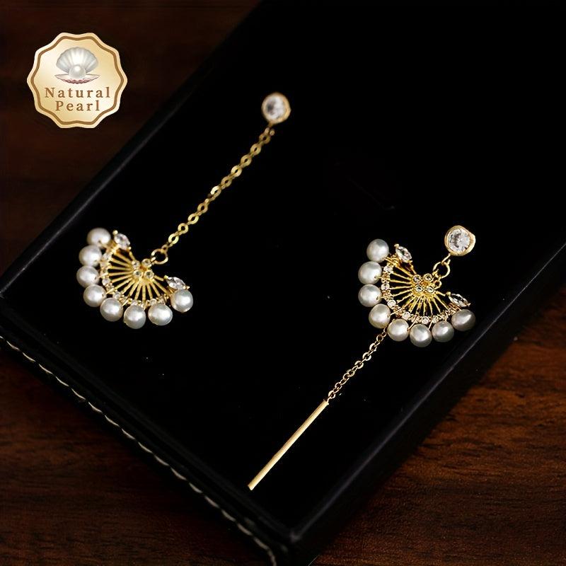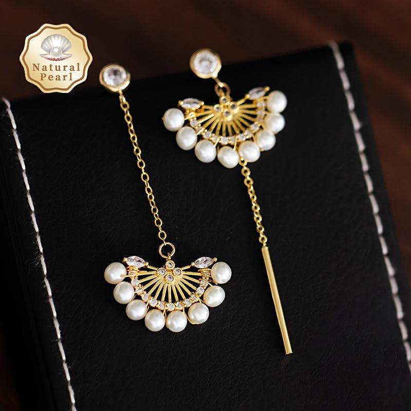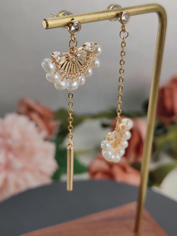 Add elegance to your style with these natural freshwater pearl earrings adorned with Zirconia in an asymmetric fan shape.