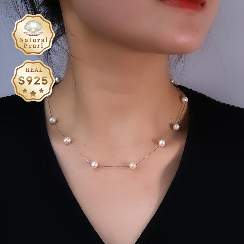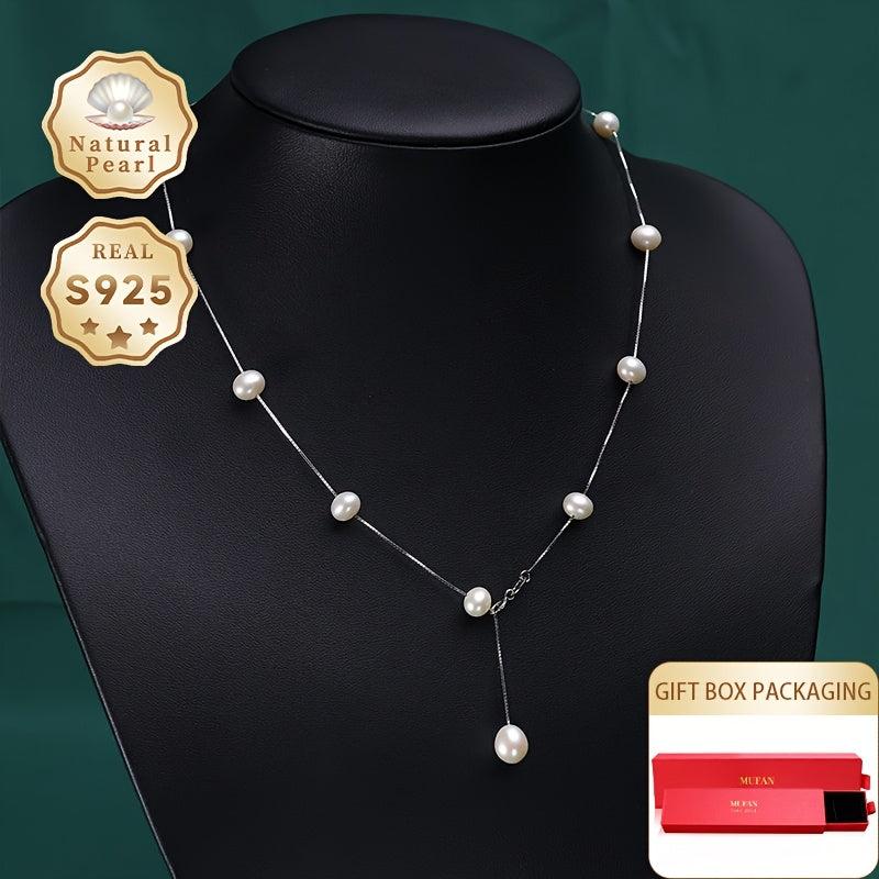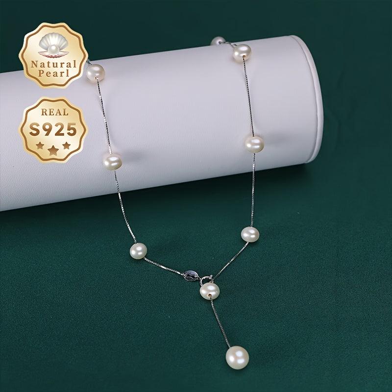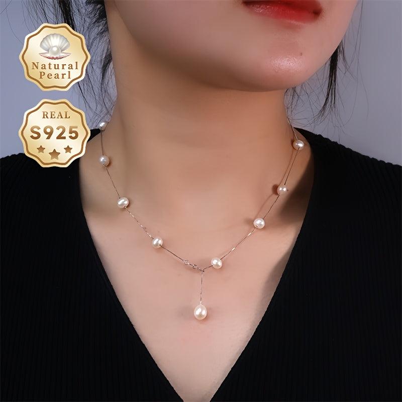 Elegant freshwater pearls necklace with a teardrop near round natural pearls Y shape design. Crafted with S925 silver for a stunning look.