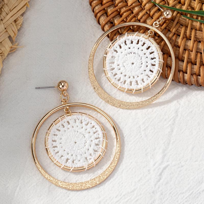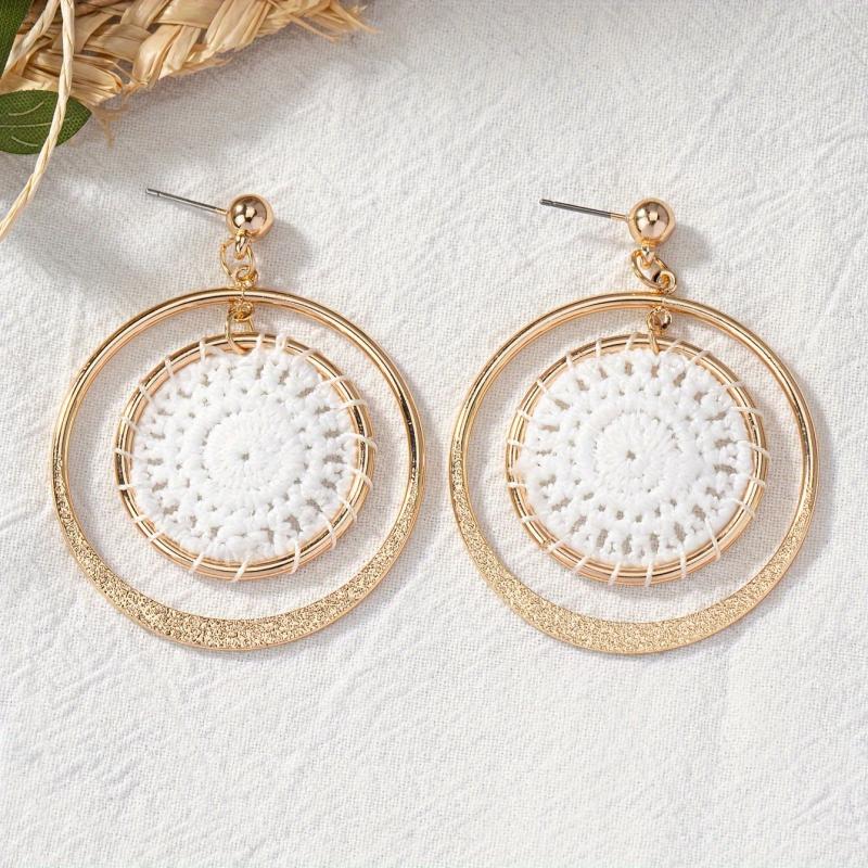 Elegant hoop earrings with vintage texture, perfect for casual attire and vacations.