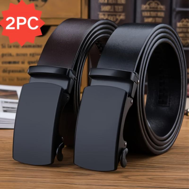 This set includes 2 faux leather belts with a retro automatic buckle. They are perfect for business or casual styles, featuring a large size alloy buckle. The belts are double-sided with a faux leather finish.