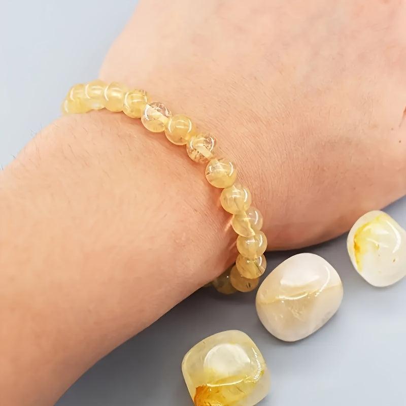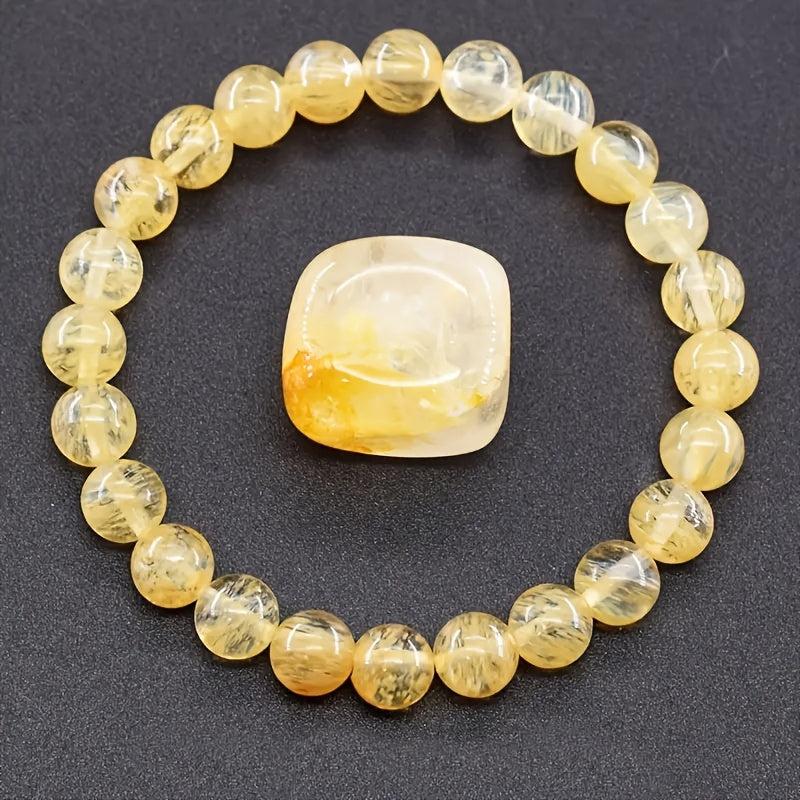 This Citrine bracelet features natural stone beads in vibrant yellow and orange hues, making it perfect for daily wear or gifting. It adds a touch of elegance to your everyday jewelry collection.