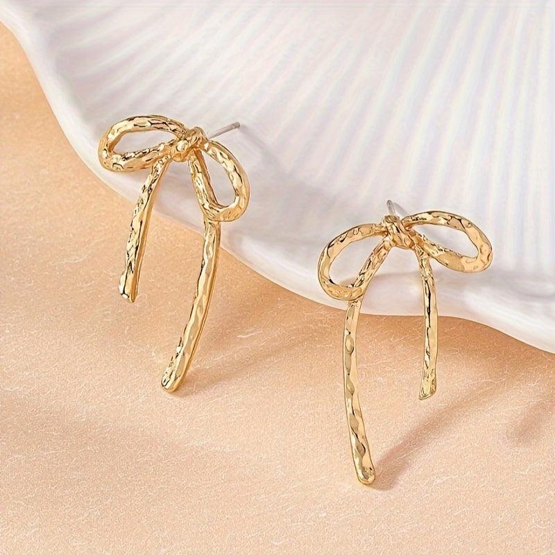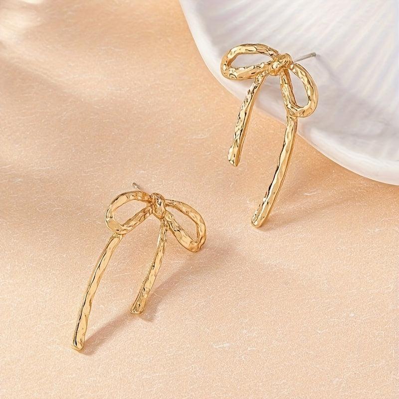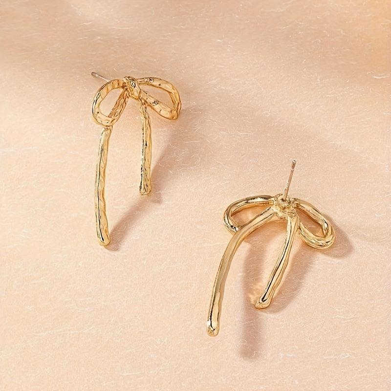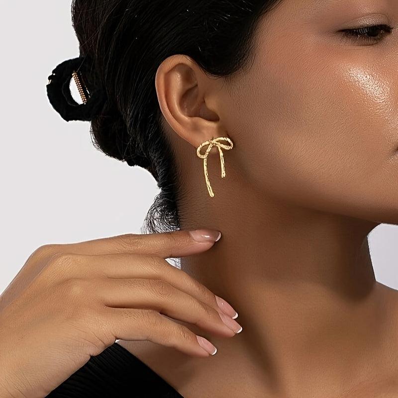 Add a touch of elegance with this pair of geometric bow stud earrings, perfect for women who love minimalist style jewelry.