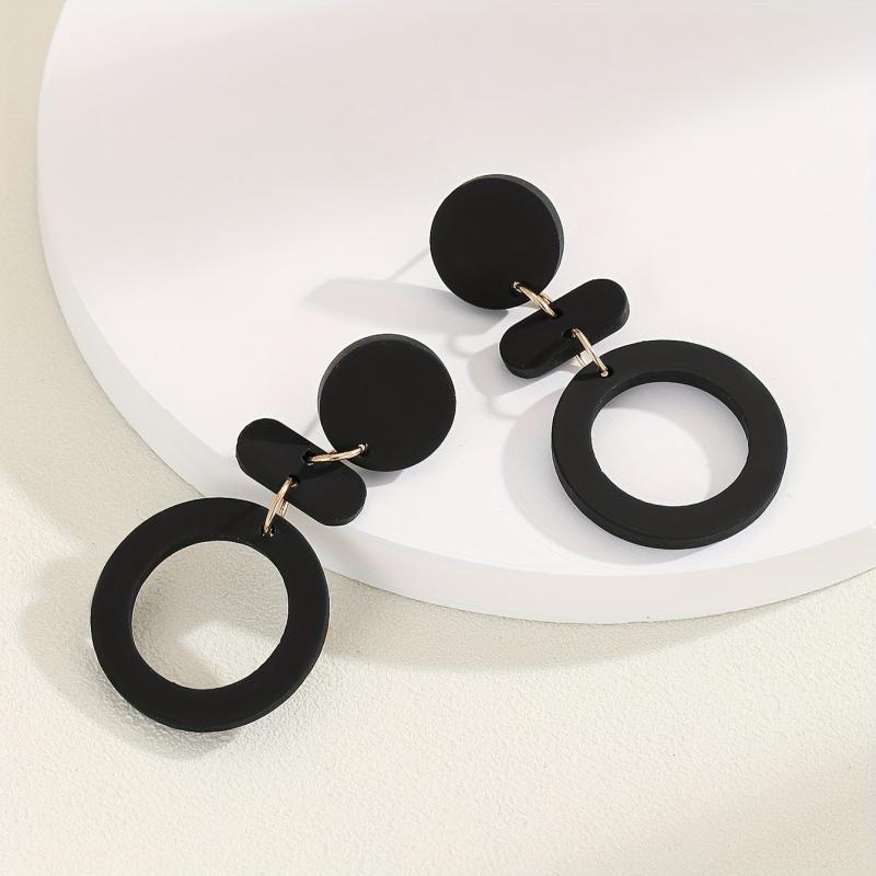 Add a touch of vintage charm to your look with these versatile geometric dangle earrings. The soft clay texture and acrylic material make them a fashionable accessory for any occasion.
