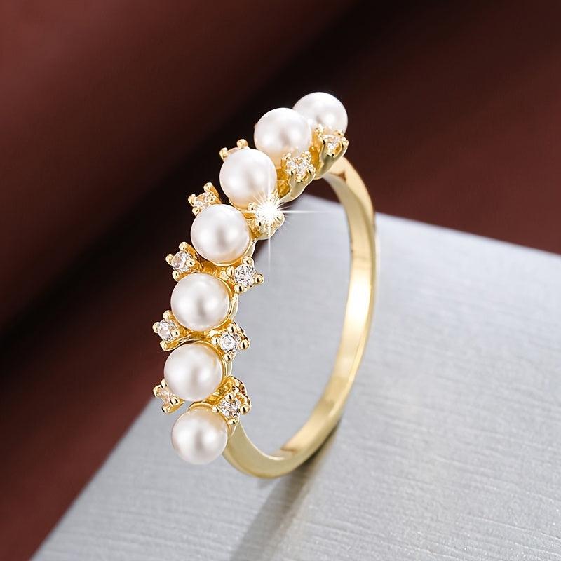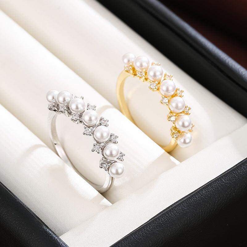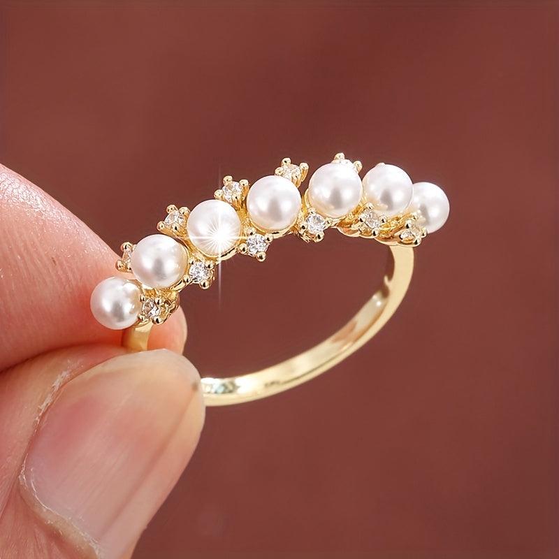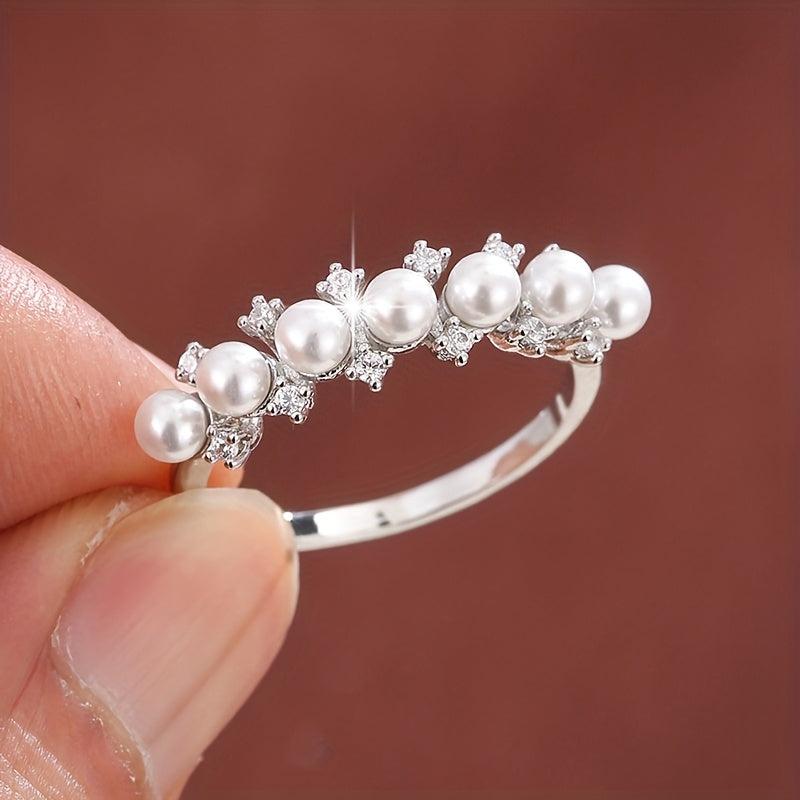 This stunning ring features a geometric design with synthetic zirconia stones, creating a beautiful and elegant look.