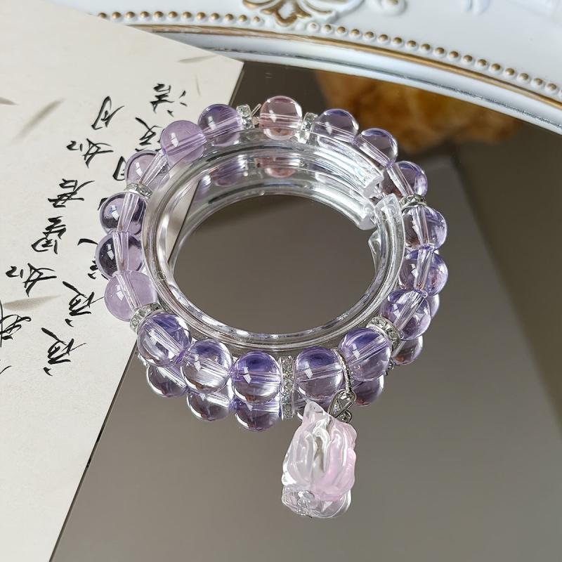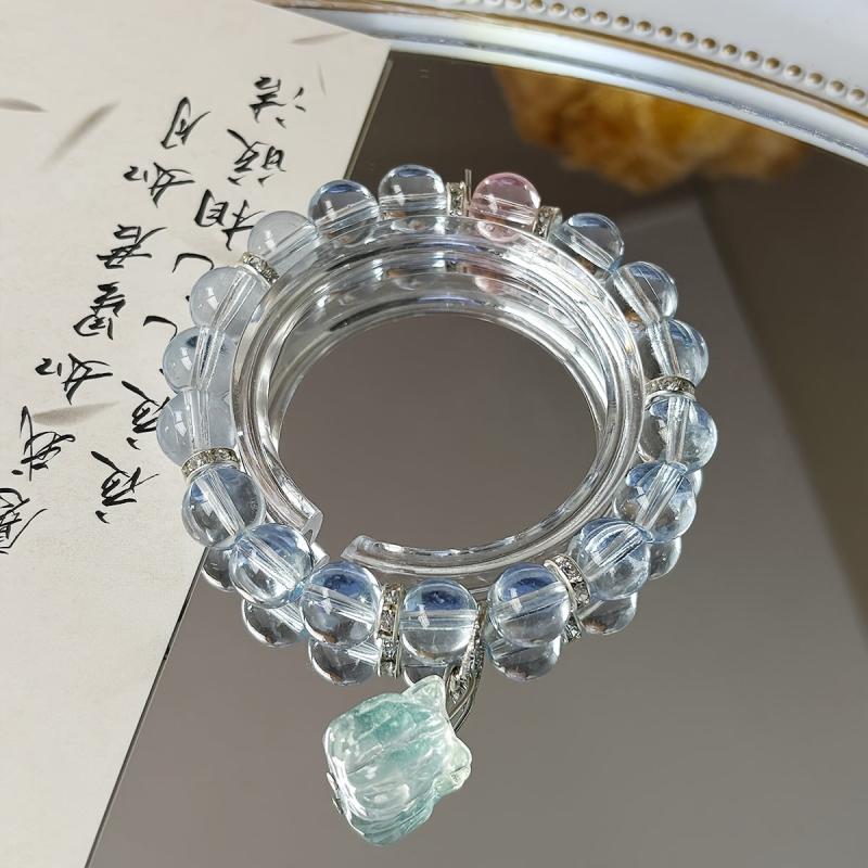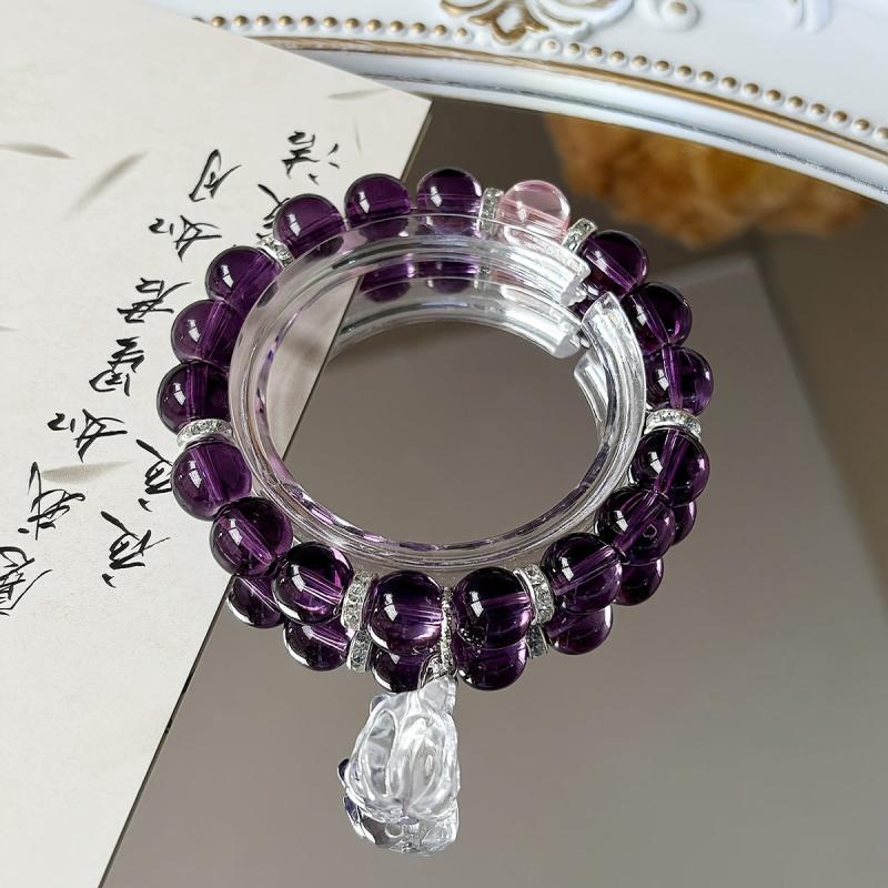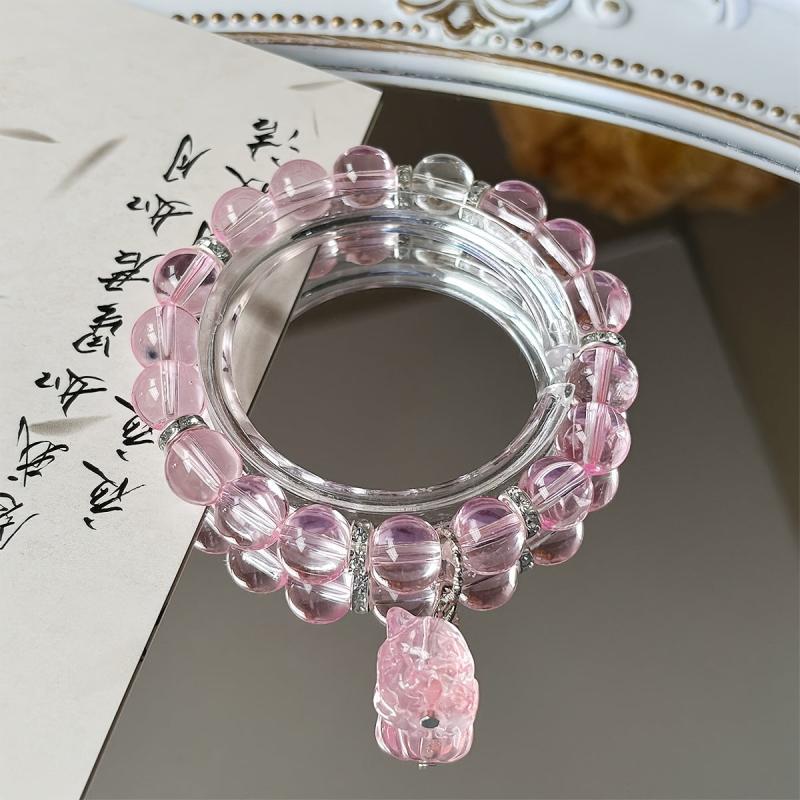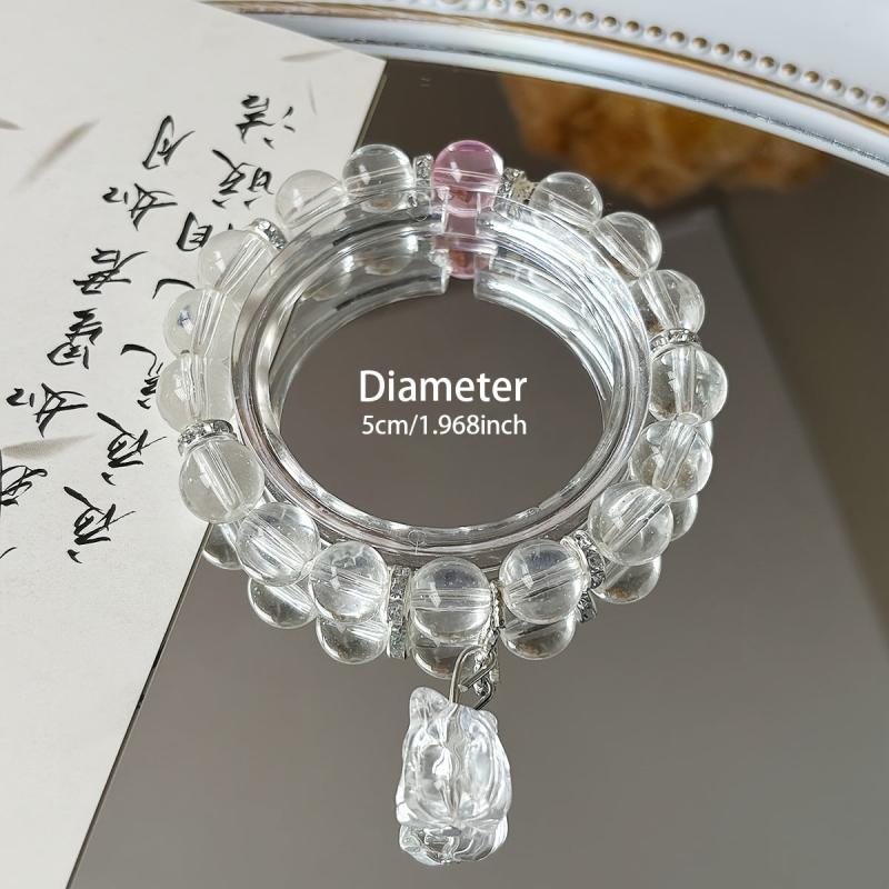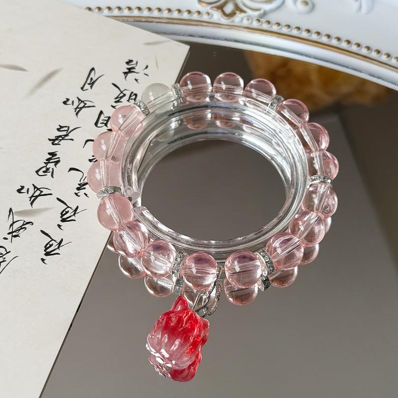This charming Glass Fox Pendant Beaded Bracelet features pink and clear transparent charms, making it a perfect accessory for everyday wear. It can be a great gift for couples or friends.