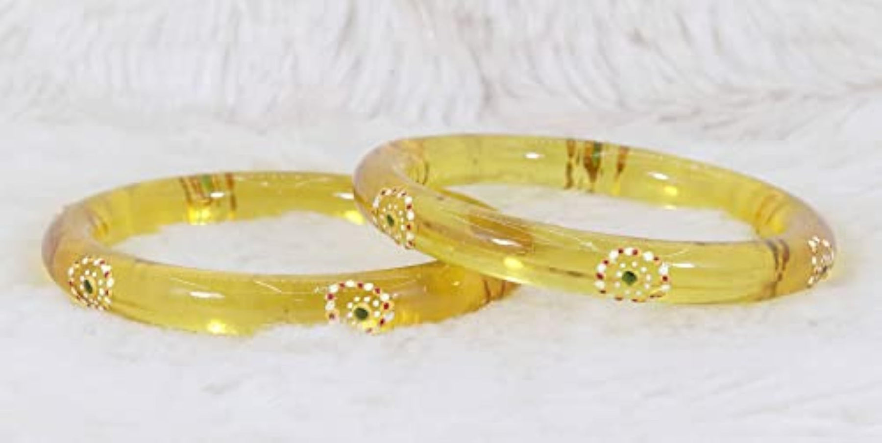 Adorn your hands with this stylish set of glass kadas featuring polka dots prints. Perfect for girls, these kadas are sleek and trendy.