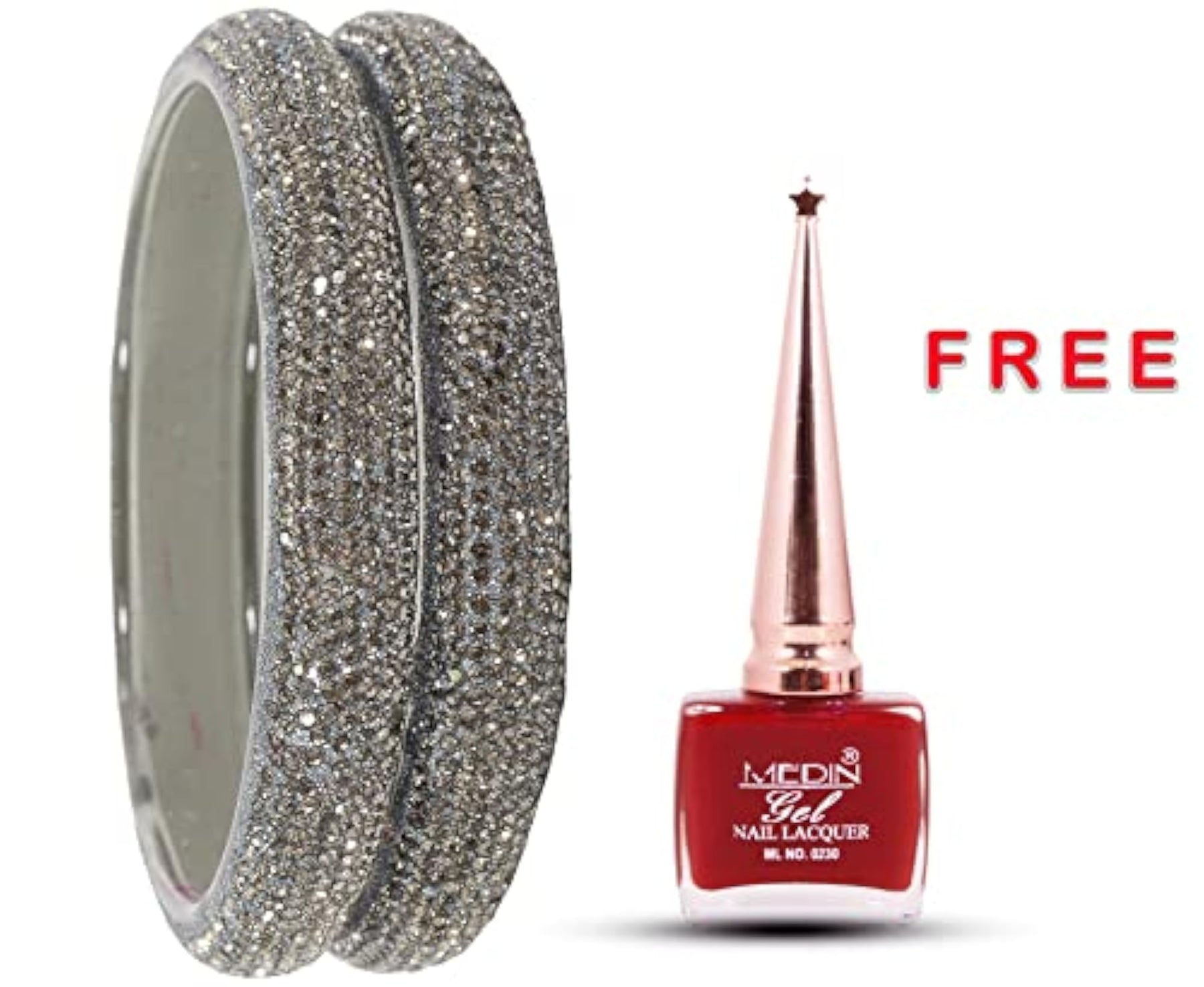 Elegant kada set featuring glass zircon gemstones and glitter design. Perfect for women and girls. Set includes 2 kadas.