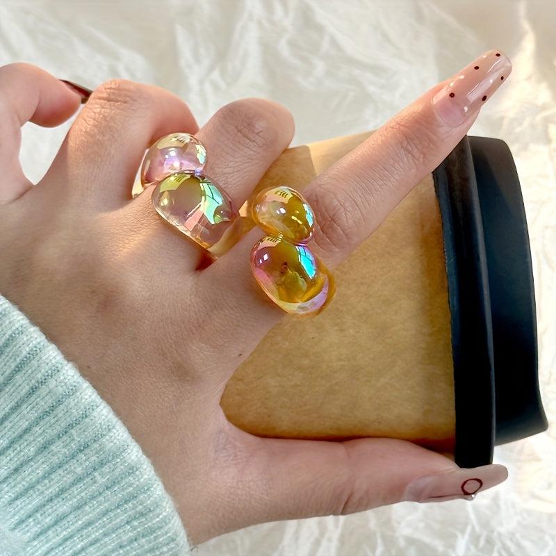 Add a touch of sparkle to your outfit with this stylish glitter ring. Made of resin, this ring is perfect for women who love the ins style version.