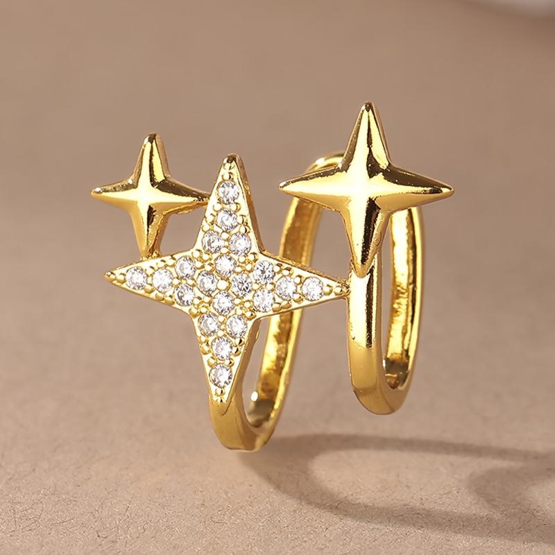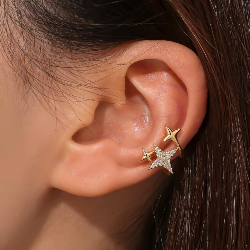 Add a touch of sparkle with this golden star ear cuff that requires no piercing. Perfect accessory for casual wear or gifting.