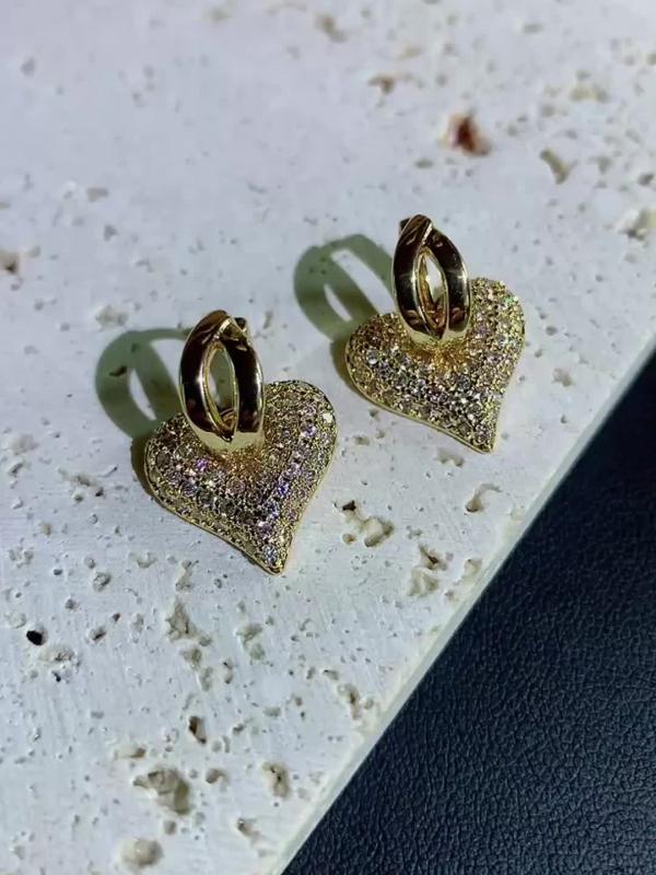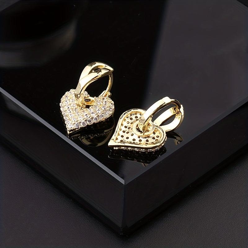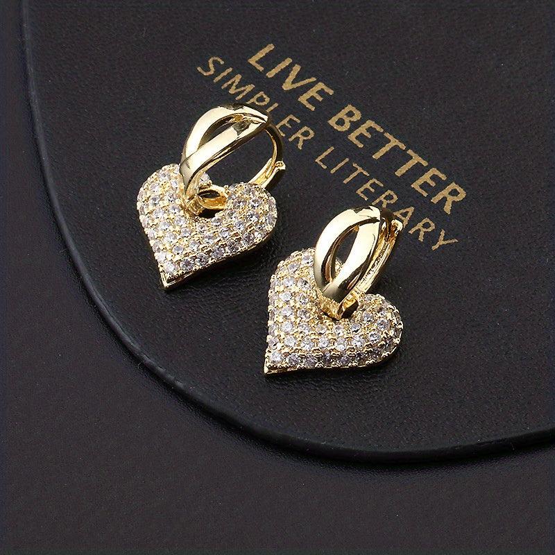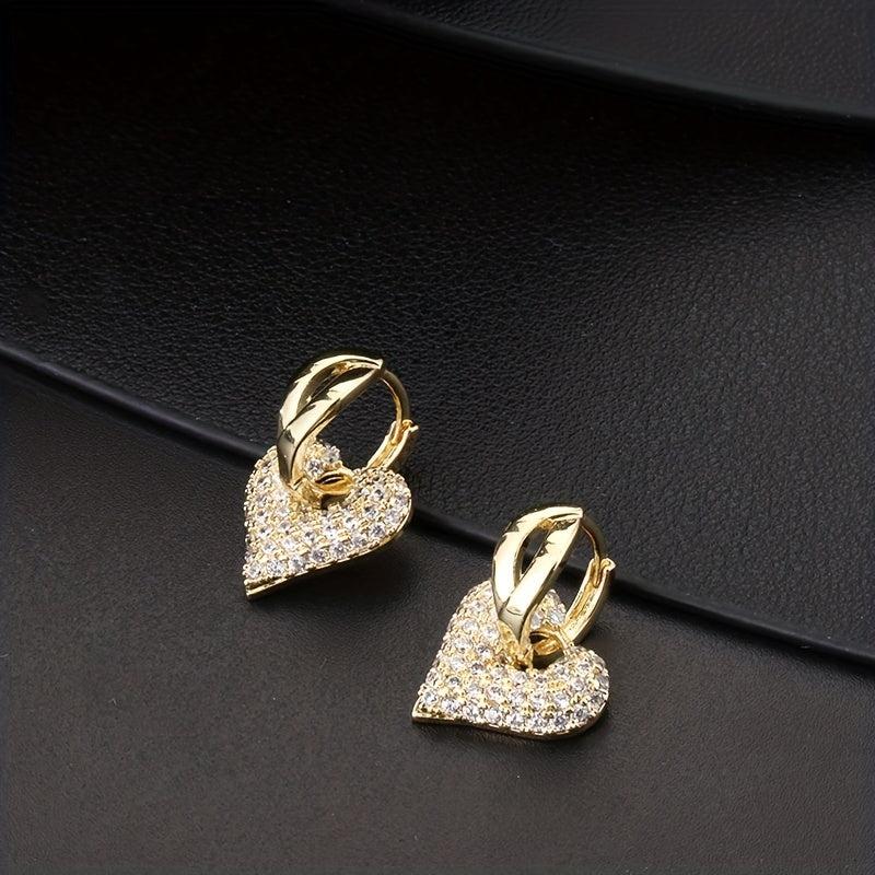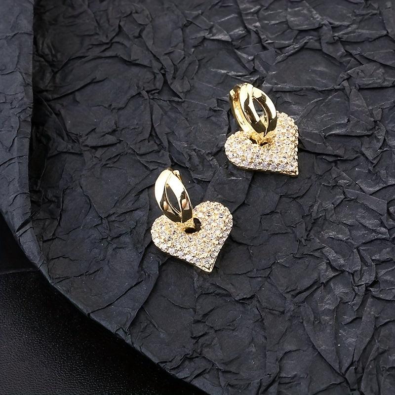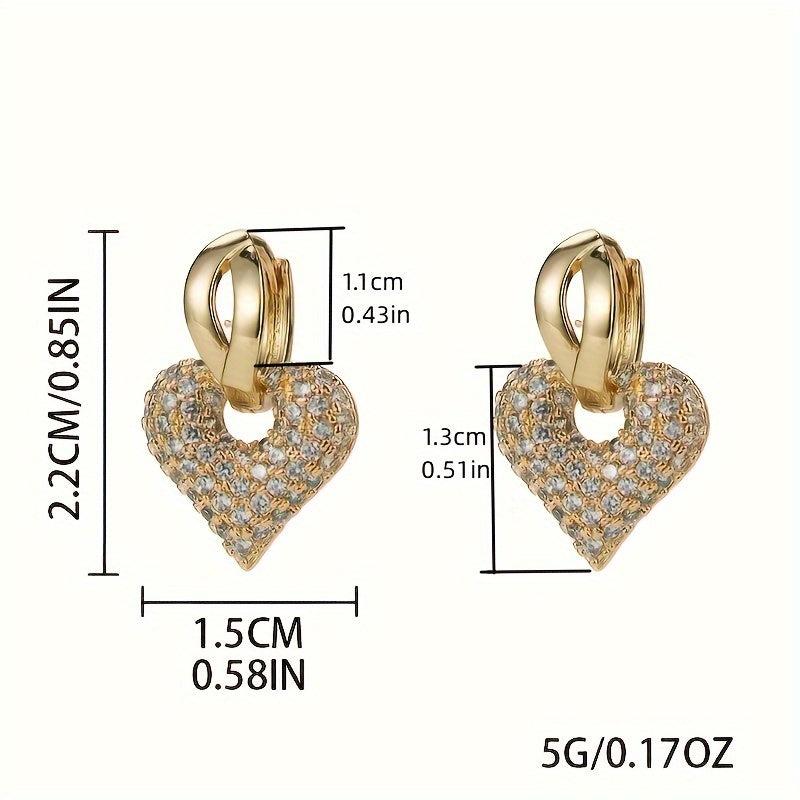 These elegant dangle earrings feature sparkling zirconia and a heart-shaped design. Made from high-quality copper, they make a perfect gift for a loved one or as a stylish addition to your outfit.