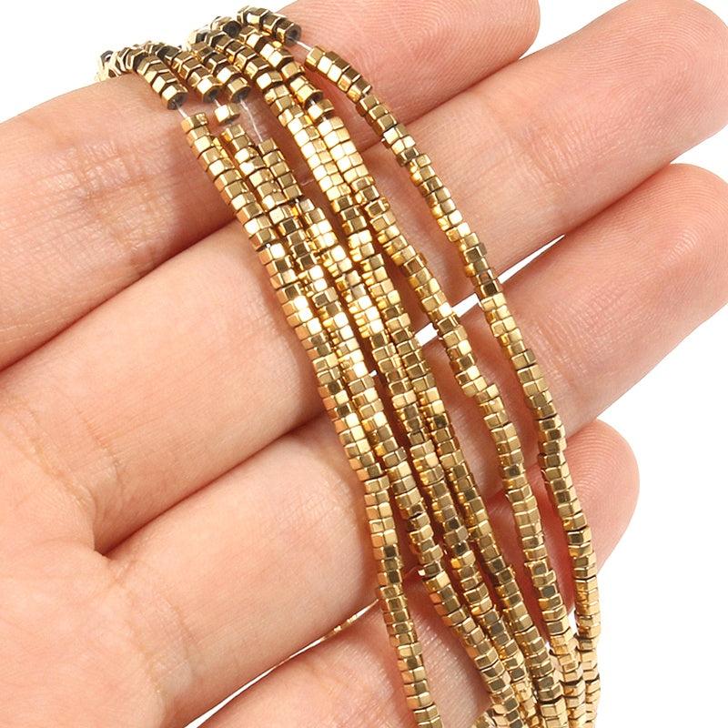 These durable natural golden hematite beads are perfect for creating bohemian jewelry like bracelets, necklaces, shoe accessories, and more.
