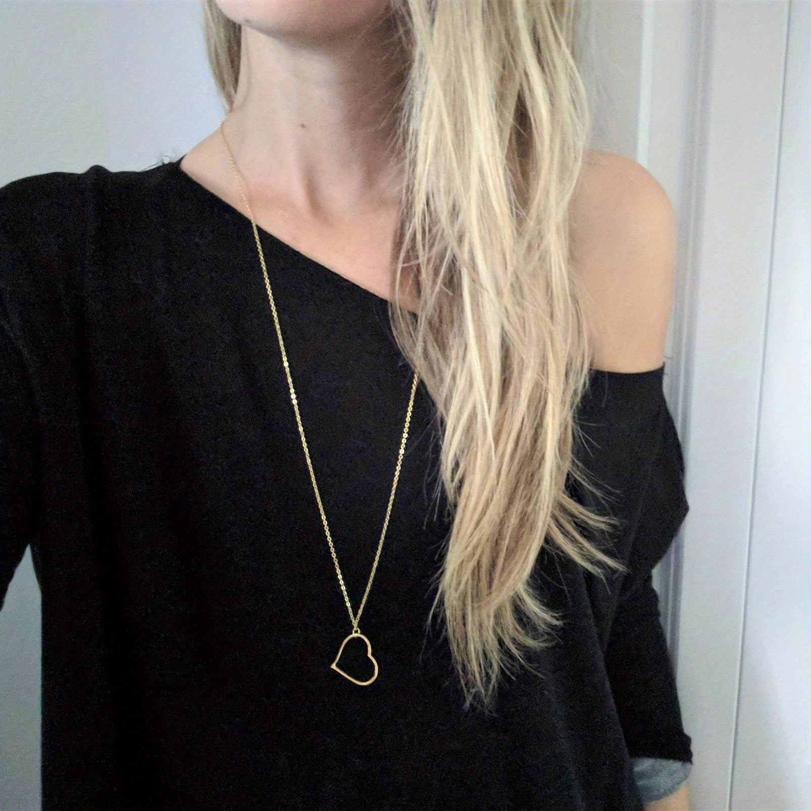 Add a touch of elegance to your outfit with this heart-shaped necklace that features a golden hollow peach design. It can be worn as a long sweater chain accessory for a chic and stylish look.