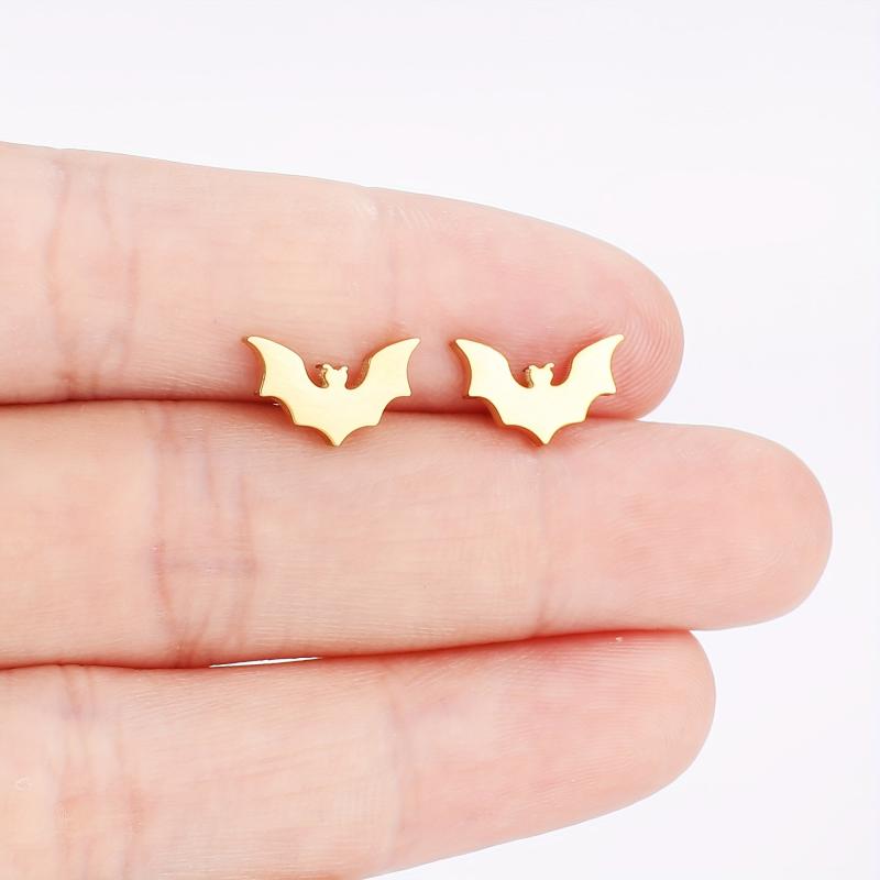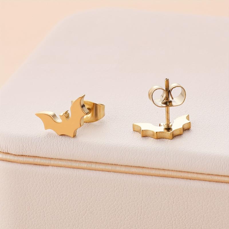These stainless steel bat stud earrings feature an elegant 18K golden plating, suitable for daily wear. Hypoallergenic ear needle ensures comfort. Perfect for any season or occasion.