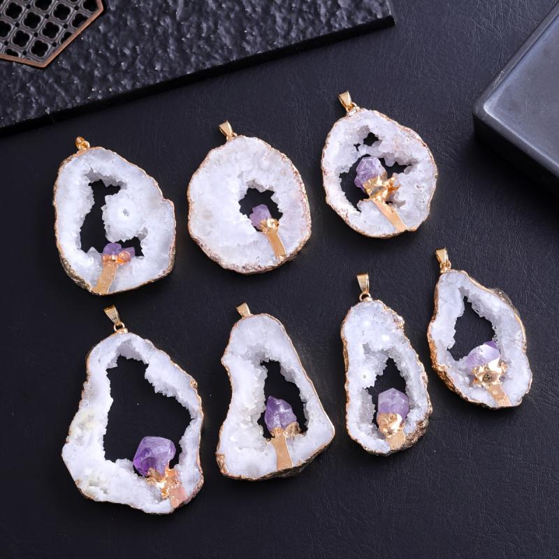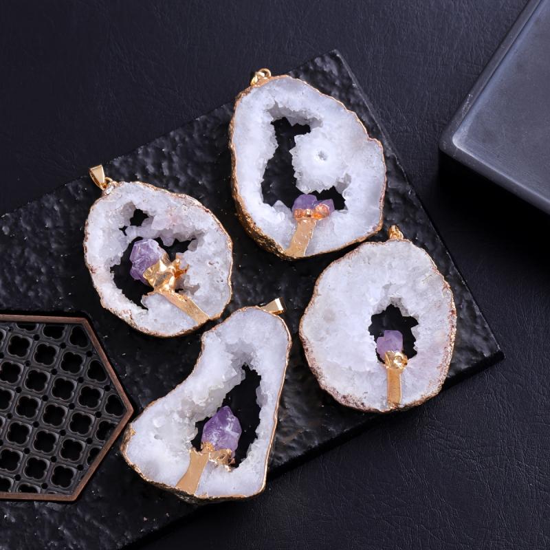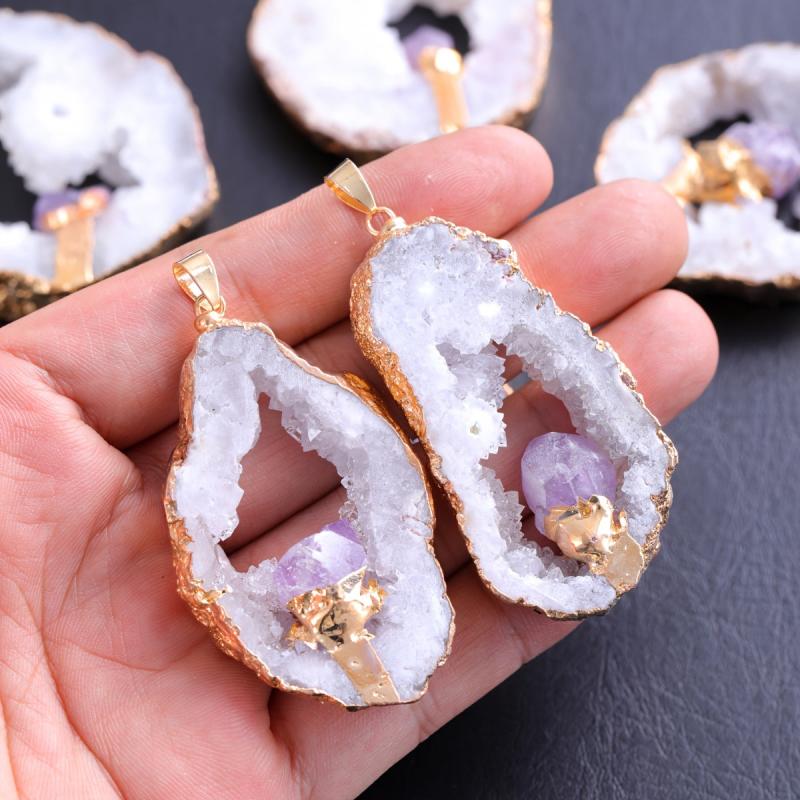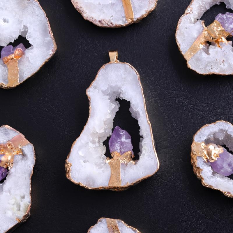 This stunning necklace features a golden plated natural crystal pendant with purple and crystal beads on a copper alloy chain. It is perfect for parties, birthdays, Valentine's Day, and holiday celebrations.