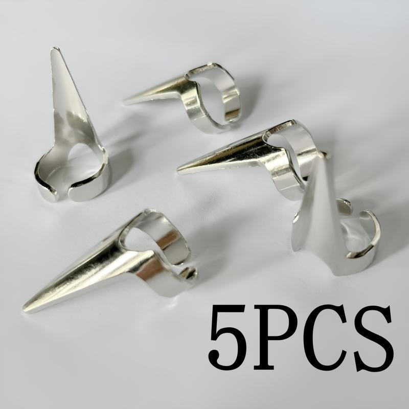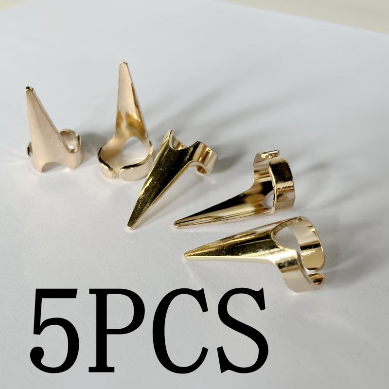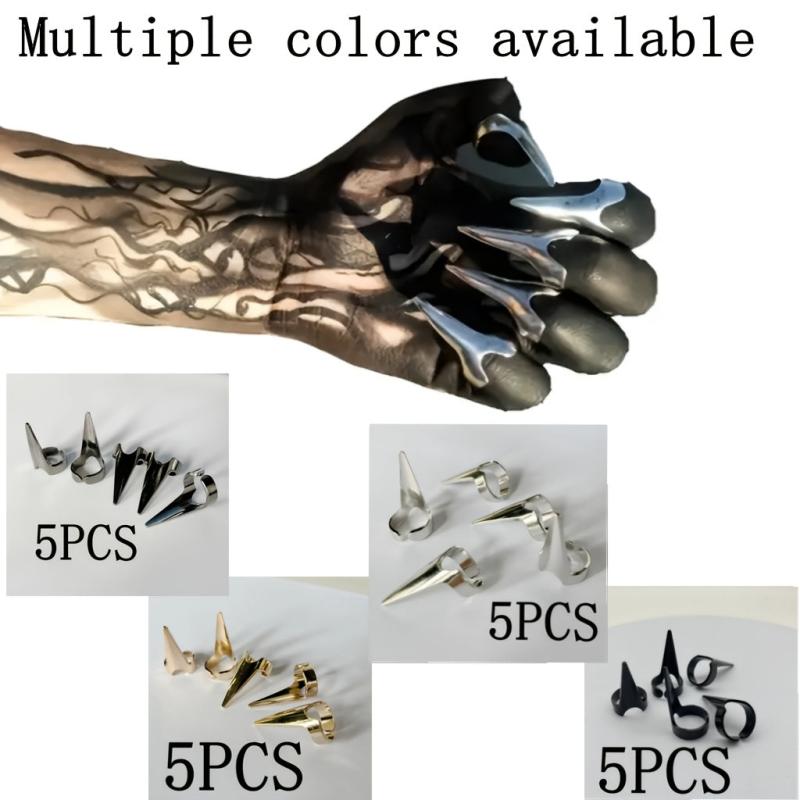 This set includes 5 golden punk claw finger rings for role playing, dance, or Halloween costumes. Add a unique touch to your outfit with these stylish rings.