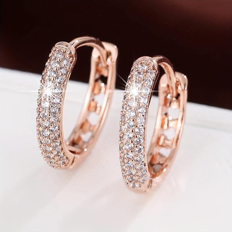 Add a touch of elegance to your daily outfit with these golden rose silvery hoop earrings. Made with copper and 18K plated, adorned with zircon for a chic look.