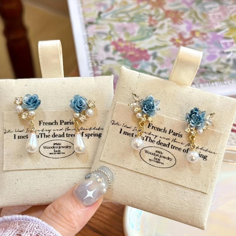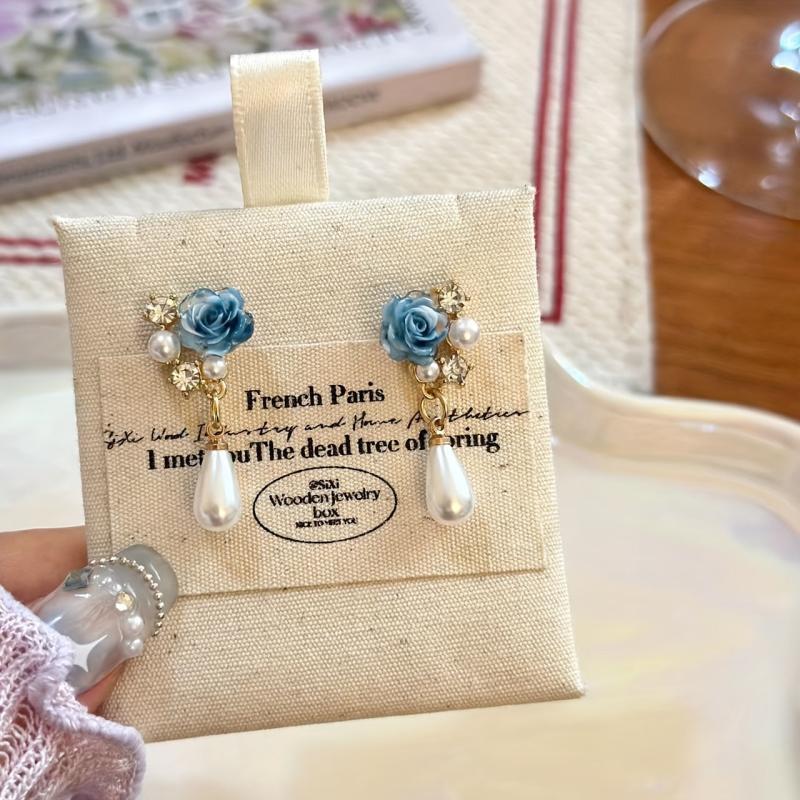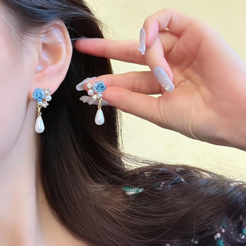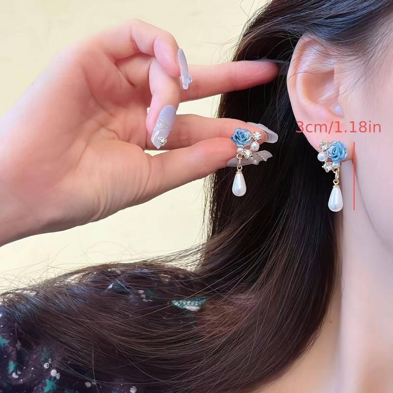 Add a touch of elegance to your evening outfit with these stylish clip-on earrings featuring rose and peony synthetic pearl accents. No piercing required, making them ideal for special occasions.