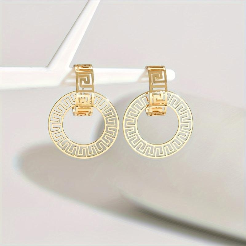 Elevate your accessory game with these intricately crafted hoop earrings. The golden tone and Great Wall-inspired design add a touch of sophistication to any outfit.