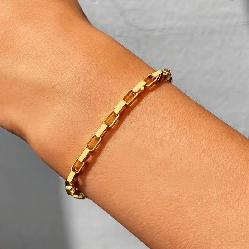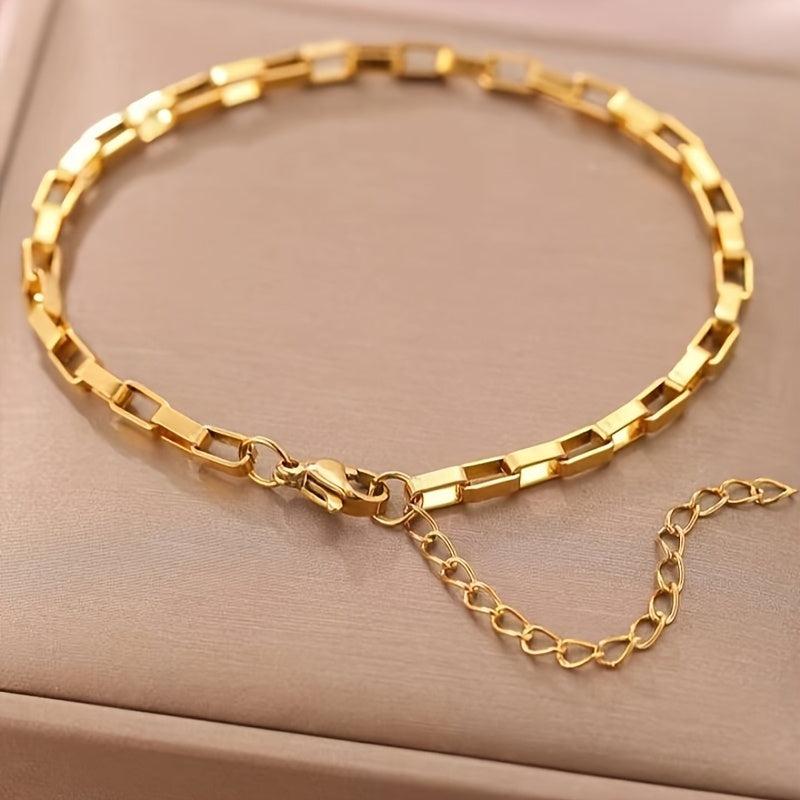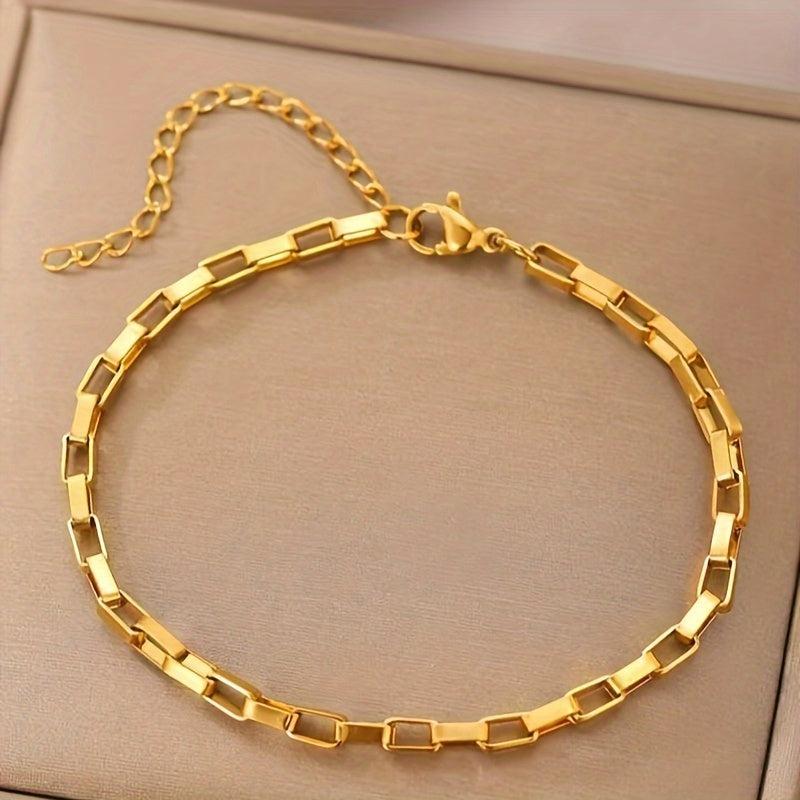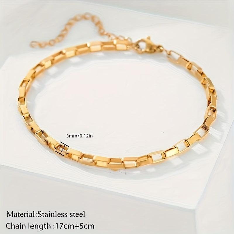 Add a touch of glam with this trendy stainless steel link bracelet. It features a 3mm rectangular design that exudes sexiness and style for women.