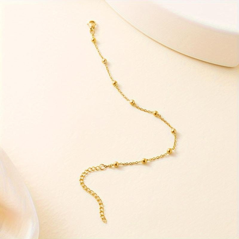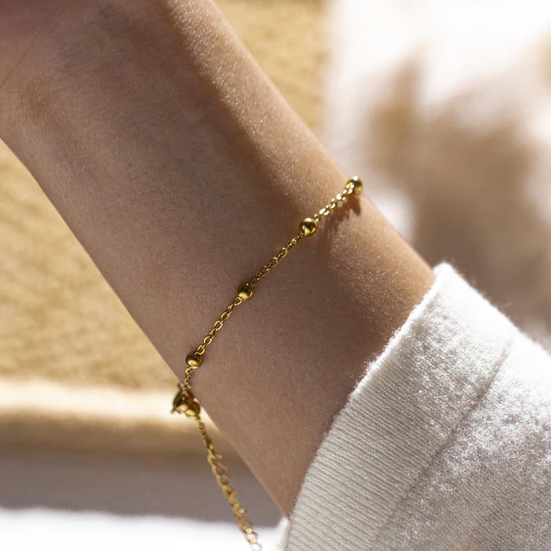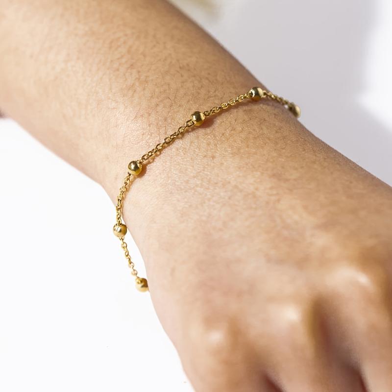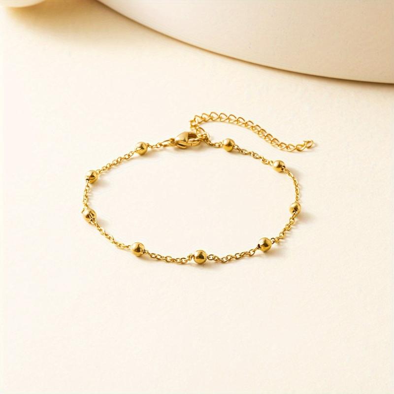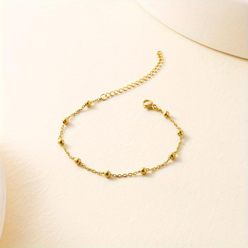 This stylish bracelet features round beads on a stainless steel chain that is adjustable and fade-resistant. The perfect gift for women.