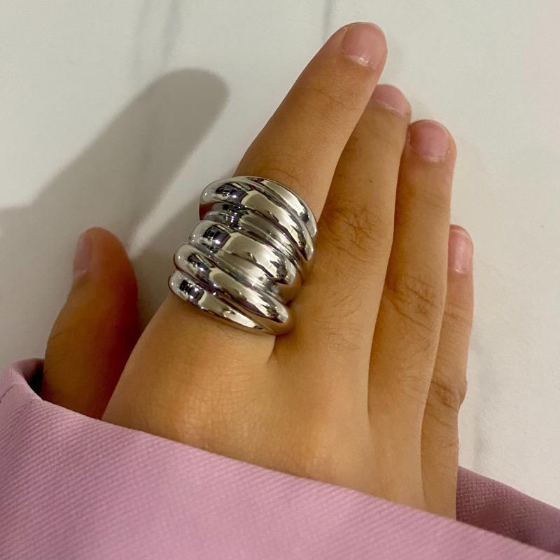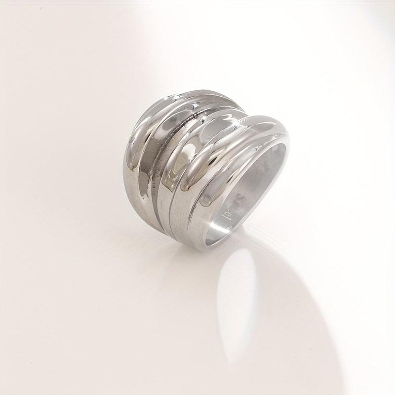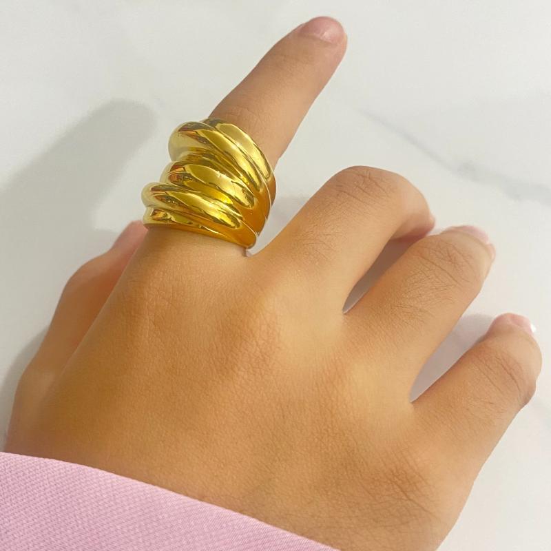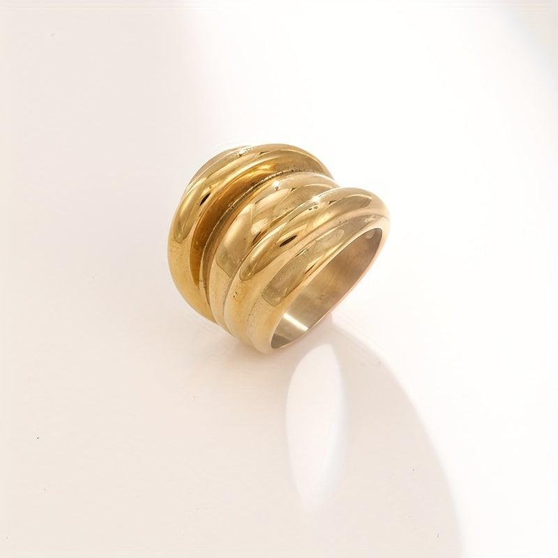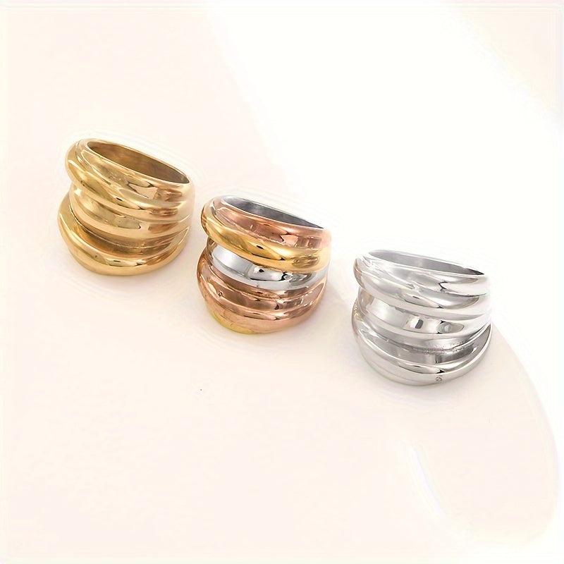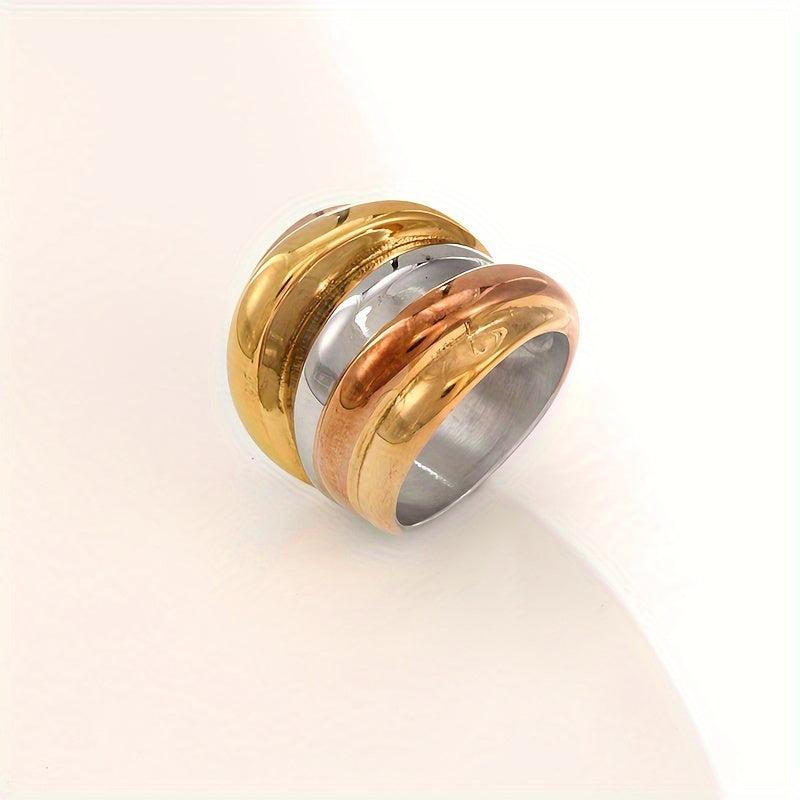 This titanium steel ring features a stunning golden tone design that is perfect for daily wear. The triple layer cast adds a unique and stylish touch to your outfit.