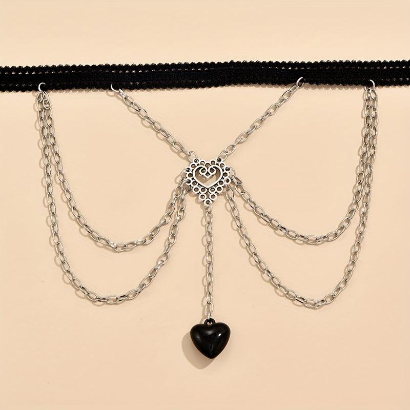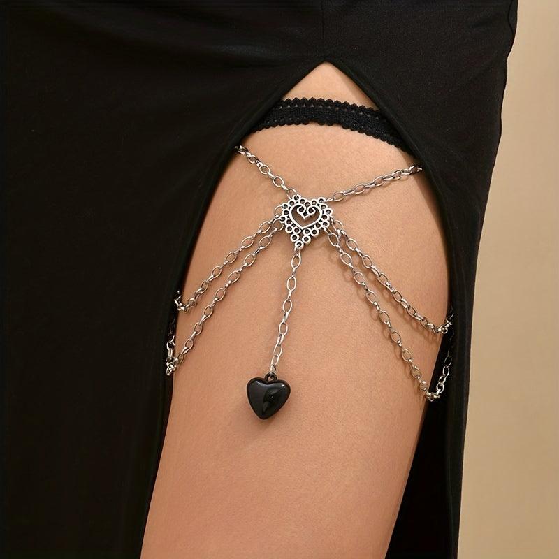 This Gothic multilayer body chain features stretch love heart design. Perfect for adding a hip hop style touch to your look.