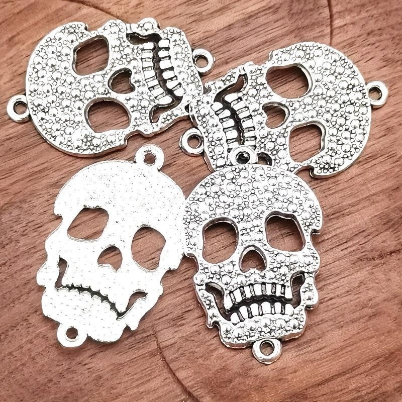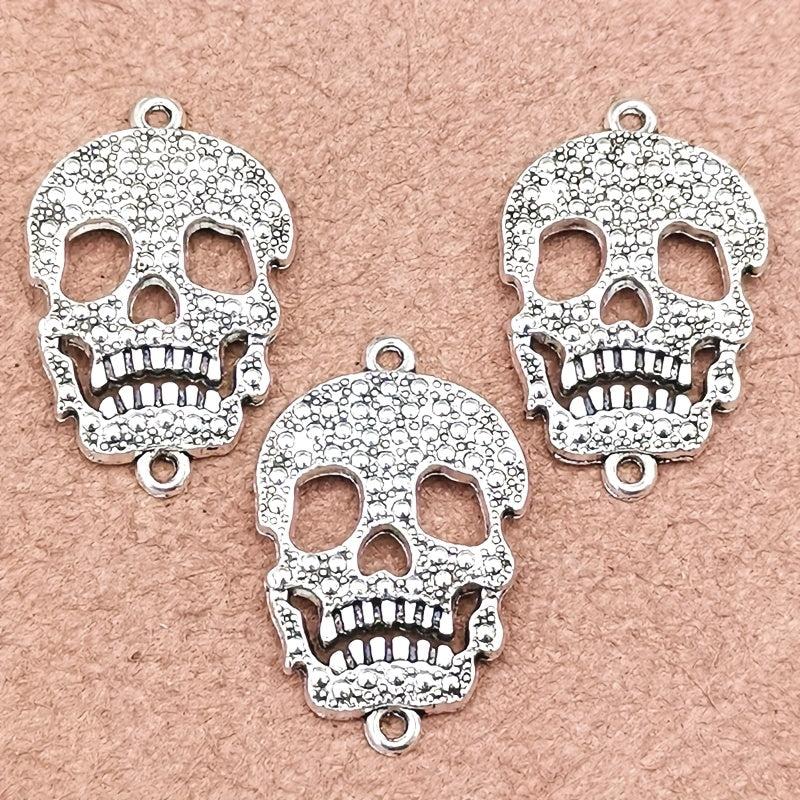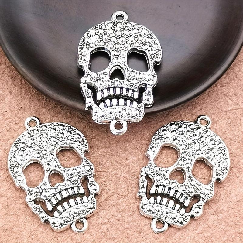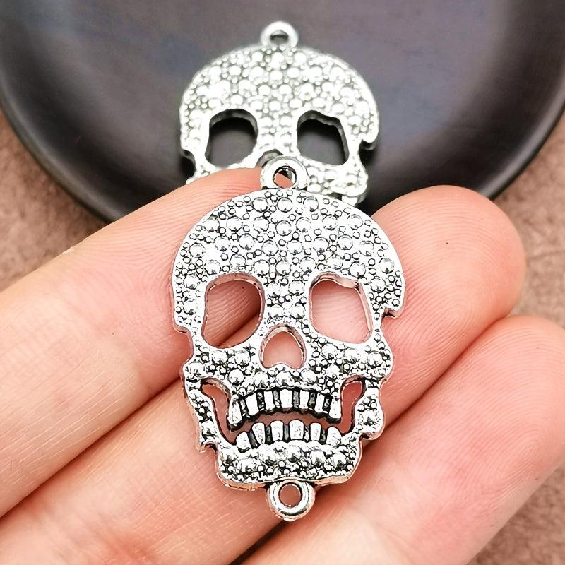 Elevate your style with this set of 7 Gothic Skull Charms Connectors designed for DIY jewelry making. These zinc alloy pendants are perfect for creating fashionable Halloween accessories for bracelets and necklaces.