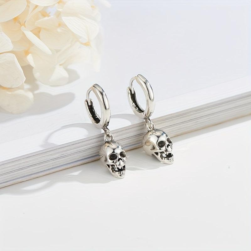 These Gothic Skull Pendant Earrings are made of vintage silvery alloy, perfect for a mature and casual style. They are ideal for parties, especially Halloween, making a great gift for anyone who loves edgy accessories.