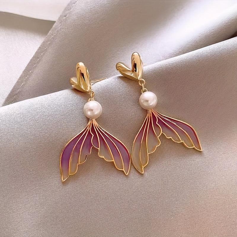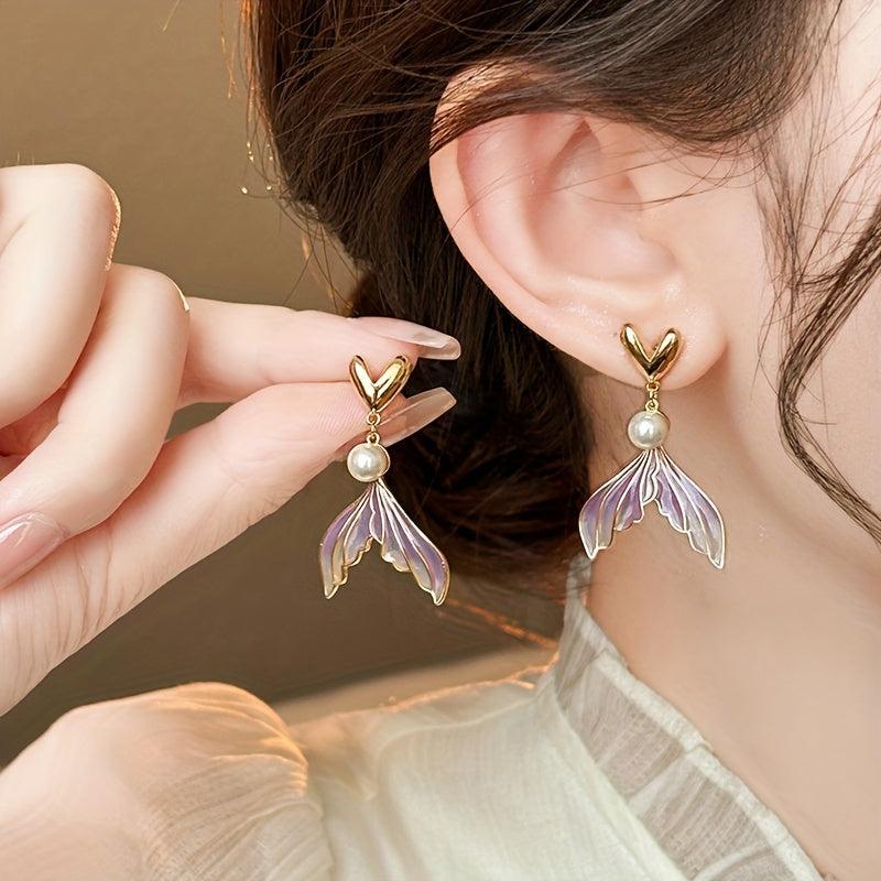 These unique earrings are a summer must-have! Made from light alloy, they feature a stunning gradient mermaid design with sparkling crystals. Add a touch of whimsical charm to any outfit with these small batch statement earrings.