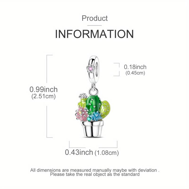 Add a touch of nature to your creations with this silver-plated green enamel cactus charm featuring synthetic zirconia. Perfect for snake bracelets and necklaces.