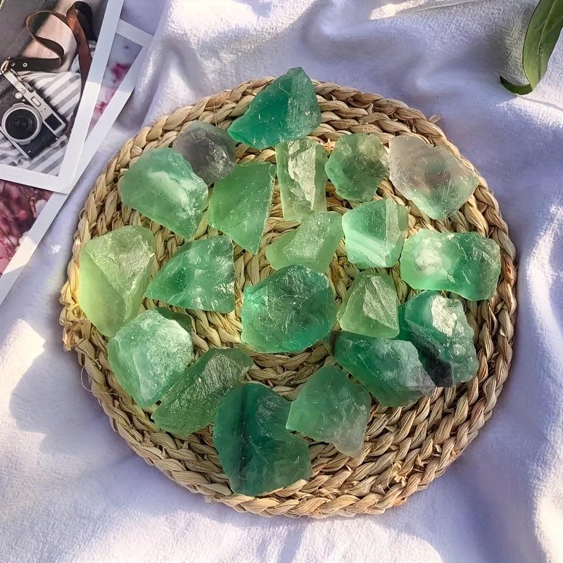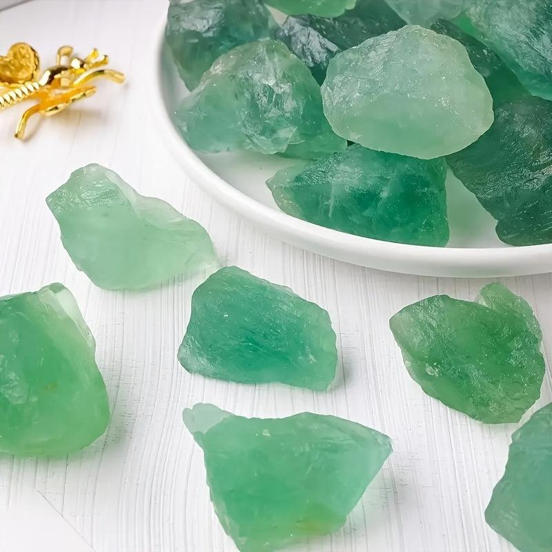 Enhance your DIY projects with these 7pcs of raw green fluorite crystals. Ideal for grinding, cleaning, and polishing. Perfect for creating unique jewelry pieces and adding a natural touch to your home decor.