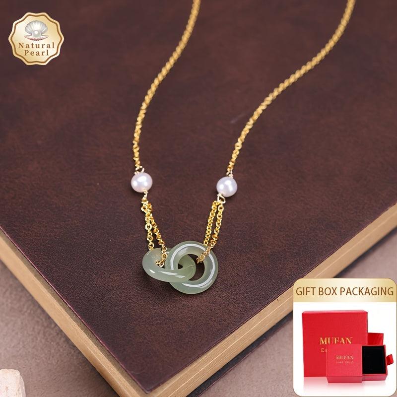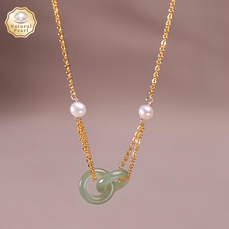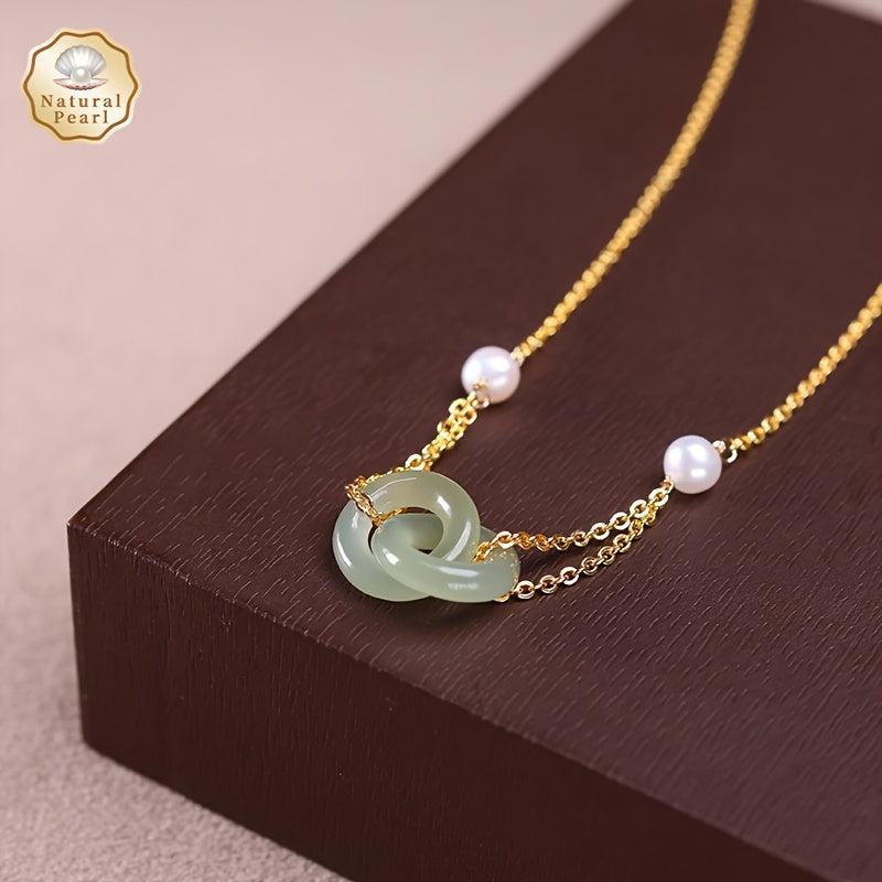 Elevate your style with this fashionable pendant necklace featuring a green natural stone embellished with natural freshwater pearls.