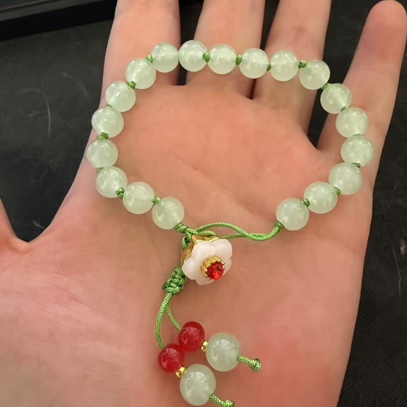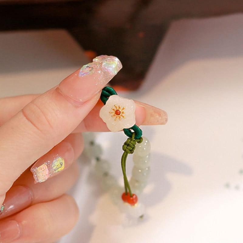 Green Peach Blossom Resin Flower Bracelet Adjustable Cord Boho Style