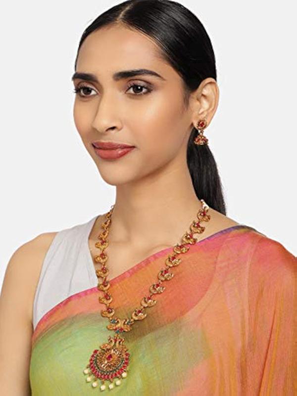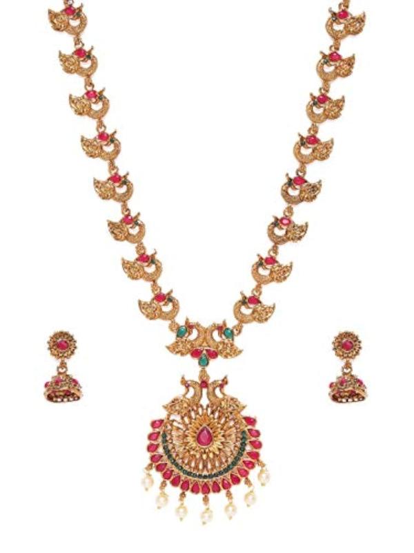 Elegant green shones peacock inspired traditional jewelry set for women.