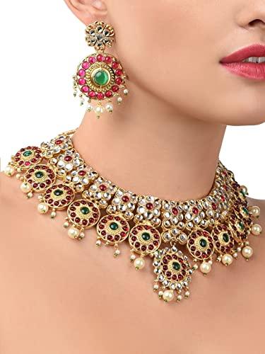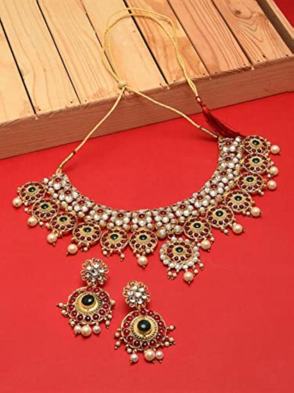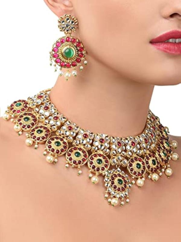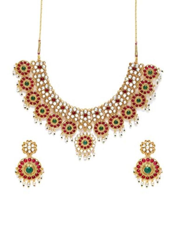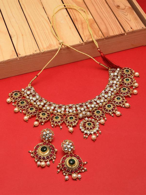 Add a touch of elegance to your wedding attire with this stunning green stones necklace and earring set.