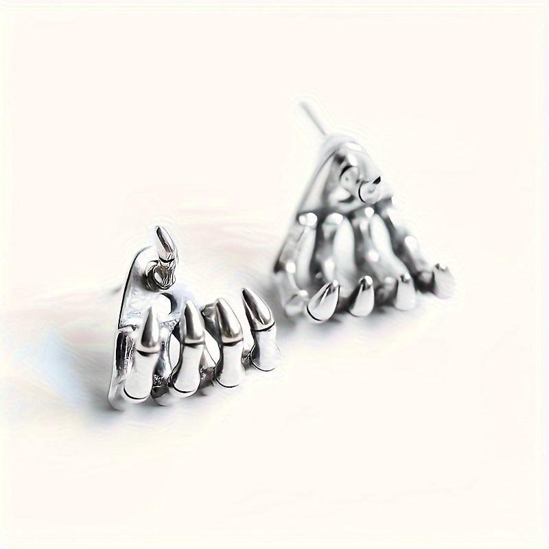 Make a bold statement with these retro gothic skull hand bone earrings. Perfect accessory for a punk or gothic look.